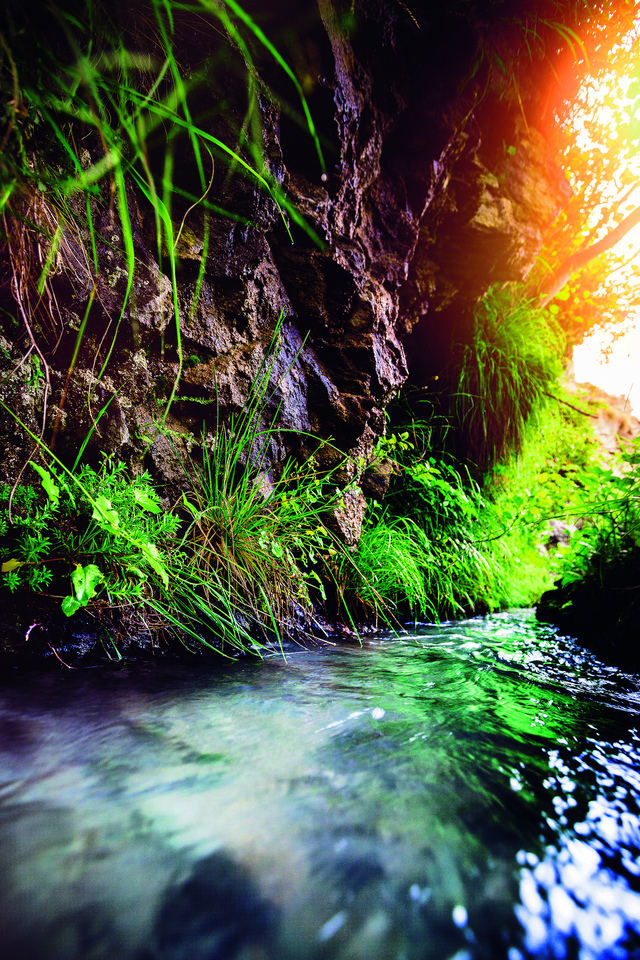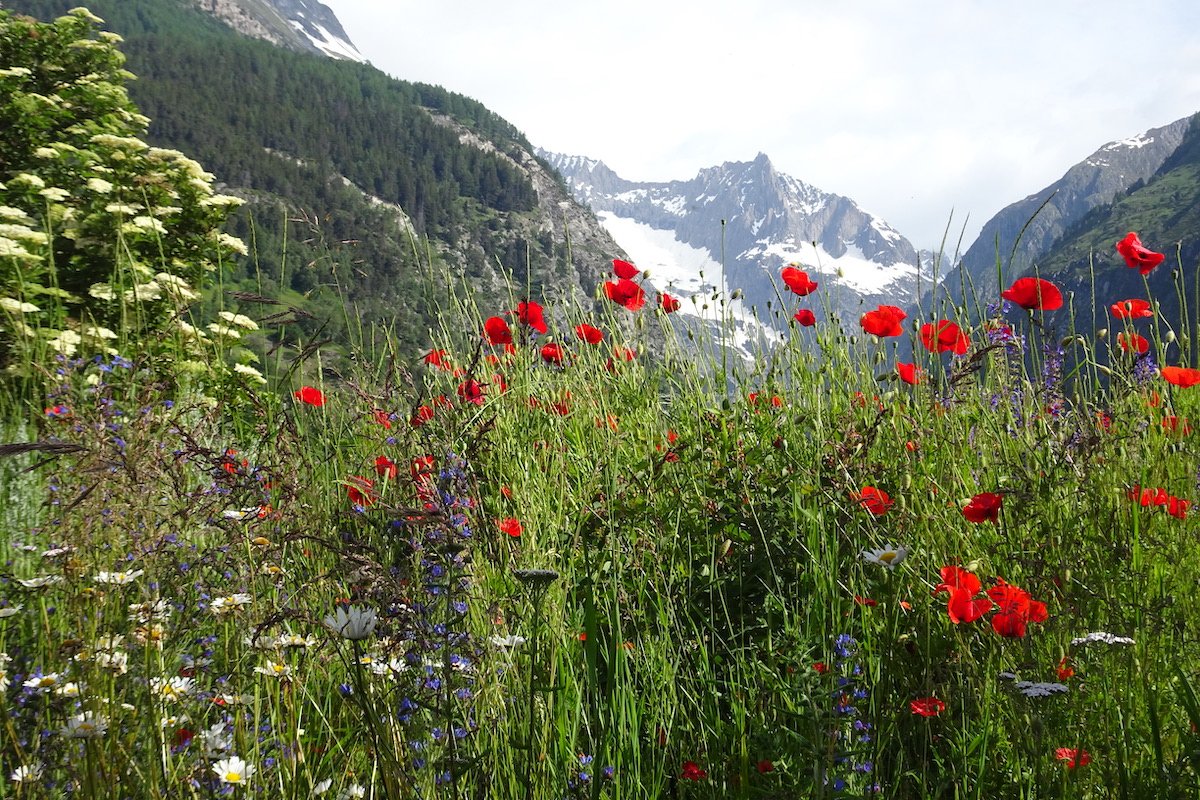 Suonen sind offene Wasserleitungen, deren Existenz in der Geschichte weit zurückreicht. Die meisten sind vor 900 bis 1000 Jahren entstanden. «Sie bringen das kostbare Wasser aus den Bergtälern in Dörfer», sagt Treui. Mit vollem Namen heisst der Wanderleiter und Vermessungstechniker Treuhold Berchtold. Er ist in Eggerberg aufgewachsen und macht sich an einem Samstagmorgen im Juni mit einer kleinen Gruppe im oberen Dorfteil Eggen auf den Weg. Mohnblumen leuchten rot, im Hintergrund verschneite Berge, weit unten das Rhonetal. Dann schliesst sich das Blätterdach mit Eschen, Holunder, Tannen, Ahorn und Ulmen. Steter Begleiter: klares, glucksendes Wasser. «Das Typische der Suonen ist ihr geringes Gefälle. Das Wasser soll von den Bergbächen in den Talkesseln möglichst weit in die Dörfer auf Plateaus oberhalb des Walliser Haupttals führen», erklärt der Wanderleiter.