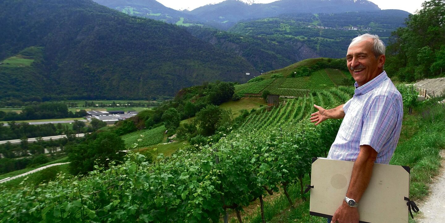 «Hier, der Gartenrotschwanz, er sitzt immer auf der Antenne», sagt Ruedi Salzgeber. Der pensionierte Sekundarlehrer aus St. German betreut seinen eigenen Weinberg und arbeitet ehrenamtlich für den Brutvogelatlas der Schweizerischen Vogelwarte Sempach. Er betont: «Wiedehopf und Zippammer sind typische Vögel dieser Kulturlandschaft.» Tatsächlich fliegt kurz vor Raron ein Wiedehopf oberhalb des Wegs über die Reben. Diese spektakulären Vögel mit Haube überwintern im tropischen Afrika und brüten im Wallis in Baum- und Steinhöhlen, die sich auch in Trockenmauern der Rebenterrassen bilden.
