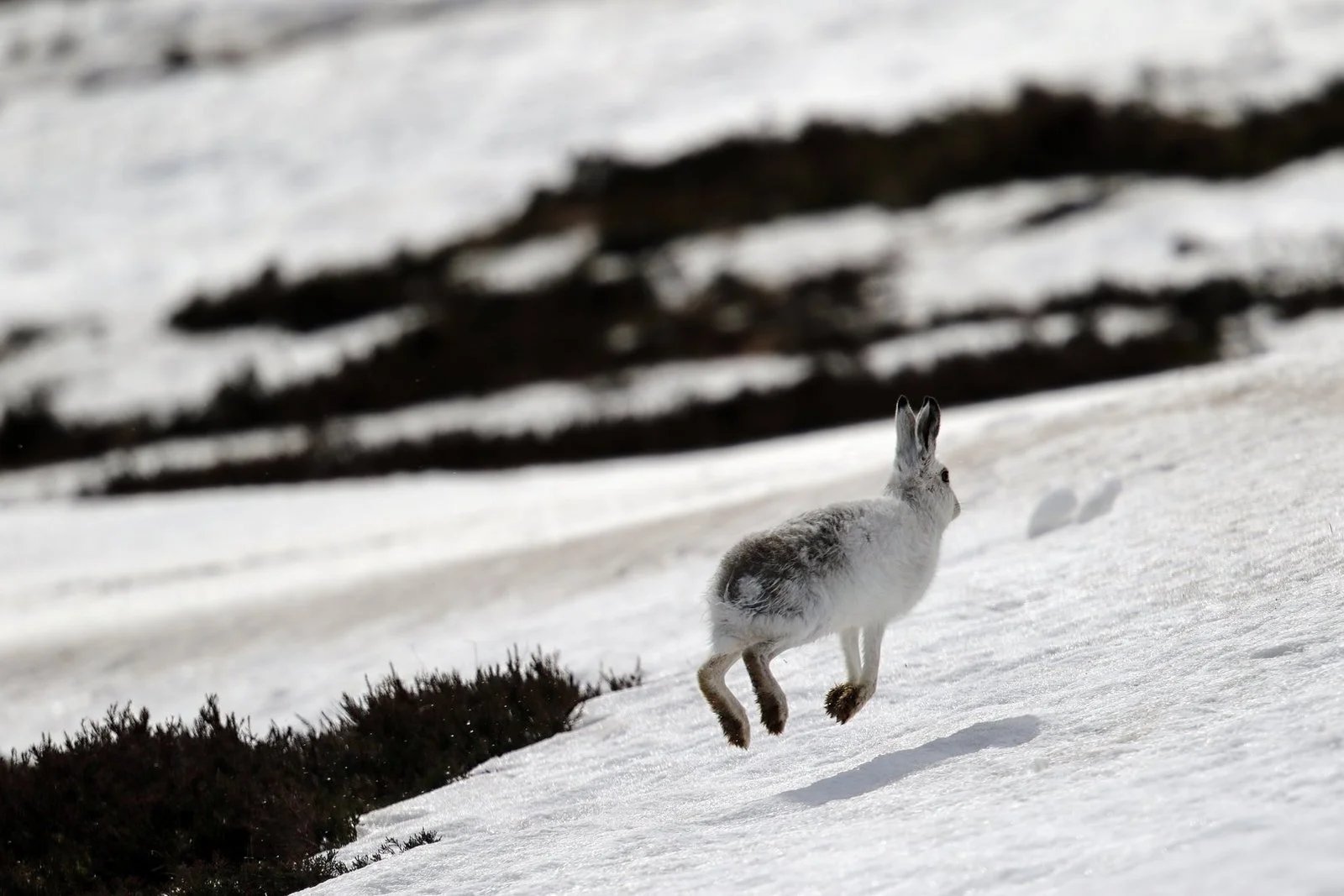 Im Winter trägt der Alpenschneehase ein schneeweisses Fell – Ausnahme sind nur die schwarzen Ohrenspitzen. In der Übergangszeit wird das Fellkleid weiss und graubraun gefleckt. Wie auch das Alpenschneehuhn leidet er unter den steigenden Temperaturen und der Abnahme der Schneedecke. Mangelt es an Schnee, wird seine weisse Tarnfärbung im Winter zur Gefahr. Zudem verändert sich durch die Erwärmung die Vegetation in den alpinen Zonen, was die Nahrungsgrundlage des Alpenschneehasen beeinträchtigt und seine Rückzugsräume verringert. Ein weiteres Problem des Schneehasen ist die Hybridisierung mit dem Feldhasen. Letzterer breitet sich durch die steigenden Temperaturen auch in höheren Lagen zunehmend aus und kann so zu einem Konkurrenten des Schneehasen werden. Der Alpenschneehase wird auf der Roten Liste der gefährdeten Säugetiere als potenziell gefährdet eingestuft.