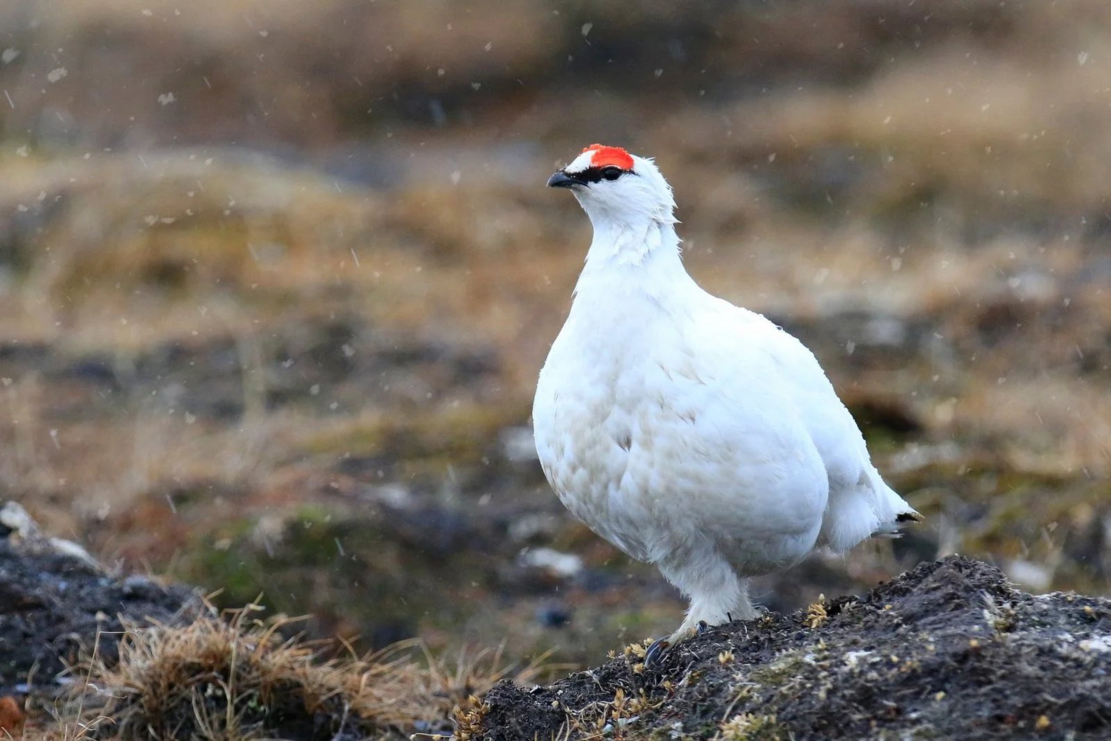 Das Alpenschneehuhn mausert dreimal pro Jahr: Bei jedem Federkleidwechsel passt es sich der jeweiligen Umgebung an. Sein Name kommt daher, dass es in den Wintermonaten fast schneeweiss ist: Nur die Männchen haben eine schwarze Schwanzunterseite und über dem Auge die sogenannten Rosen, eine rote Hautwulst über dem Auge. Alpenschneehühner leben fast ausschliesslich am Boden in Höhen von 2000 bis 2500 Metern über Meer. Dabei verlassen sie sich auf ihre Tarnung: Nähern sich Menschen, bleiben sie so lange sitzen, bis man sie fast tritt. Durch die Klimaerwärmung verliert die Art zunehmend ihren Lebensraum. Bei Temperaturen über 15 Grad ziehen sie sich an schattigere Plätze zurück. Unter den steigenden Temperaturen finden sie daher weniger Rückzugsorte; die Tarnung des Federkleides wird durch die zunehmende Vergrünung unnütz. Laut Angaben der Vogelwarte Sempach ist der Bestand an Alpenschneehühnern seit Mitte der Neunzigerjahre um einen Drittel zurückgegangen. Hierzulande ist die Art auf der Roten Liste der potenziell gefährdeten Arten eingestuft. In den Kantonen Graubünden, Wallis und Uri wird das Alpenschneehuhn bejagt.