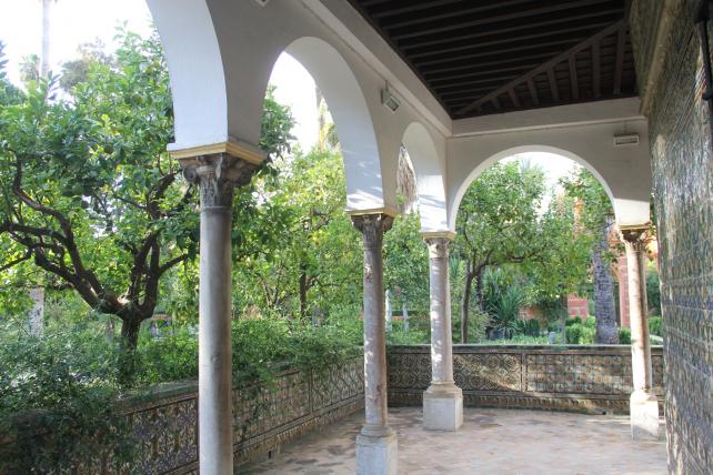 Die Erbauer wussten sich abzugrenzen gegen das gemeine Volk. Die Mauer mit den eingebauten Verteidigungstürmen spiegelt die politische Instabilität der muslimischen Epoche. 712 begannen Araber, Teile der Iberischen Halbinsel zu erobern. Zuerst war Cordoba die Hauptstadt von al-Andalus, wurde dann aber von Sevilla abgelöst. Der Alcázar wurde im 11. Jahrhundert von den muslimischen Invasoren erbaut. Die arabischen Elemente sind denn auch prägend im Palast-Garten und sind besonders reizvoll. Das fanden auch die christlichen Herrscher, die Andalusien ab dem 13. Jahrhundert zurückeroberten und den Alcázar übernahmen und weiter ausbauten. Heute gehört er dem spanischen Staat.