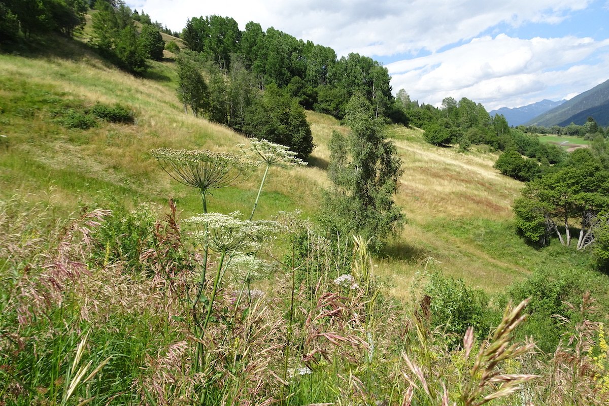 Das Männchen der Braunkehlchen sitzt mit Vorliebe auf Zaunpfählen in den Wiesen und singt, um sein Revier zu markieren. Während einer Wanderung oder einer Velotour durch das Hochtal im Mai und Juni können die Sänger beobachtet werden. Das Weibchen bebrütet im hohen Gras fünf bis sieben Eier oder es betreut schon die verstreut sitzenden Jungen. Sie verlassen nämlich schon nach zehn Tagen noch flugunfähig das Nest und verteilen sich zur Feindvermeidung in der Wiese. Auch andere Wiesenbrüter profitieren. Im Goms singen Feldlerchen, und Wachteln lassen sich mit Glück beobachten. Ganz selten schallt der laute, zweisilbige Ruf des Wachtelkönigs aus dem hohen Gras in die Nacht, einer in der Schweiz fast ausgestorbenen Vogelart. Ein verheissungsvolles Refugium, nicht nur für Naturfreundinnen und Ruhesuchende.