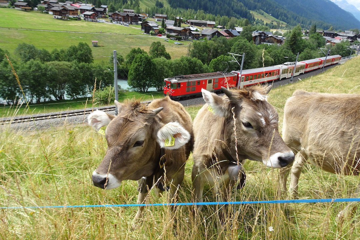 Die rote Bahn schlängelt sich durchs Tal, ruckelt, sobald das Zahnrad greift und sie an Höhe gewinnt. Tief unten schäumt die junge, milchige Rhone. Bald danach säumen Dörfer mit von der Sonne schwarz gegerbten Holzhäusern das Bahntrassee im offenen Tal. Drückt ein Fahrgast den Knopf, hält der Zug an Stationen mit Namen wie Niederwald, Blitzingen, Biel oder Gluringen.