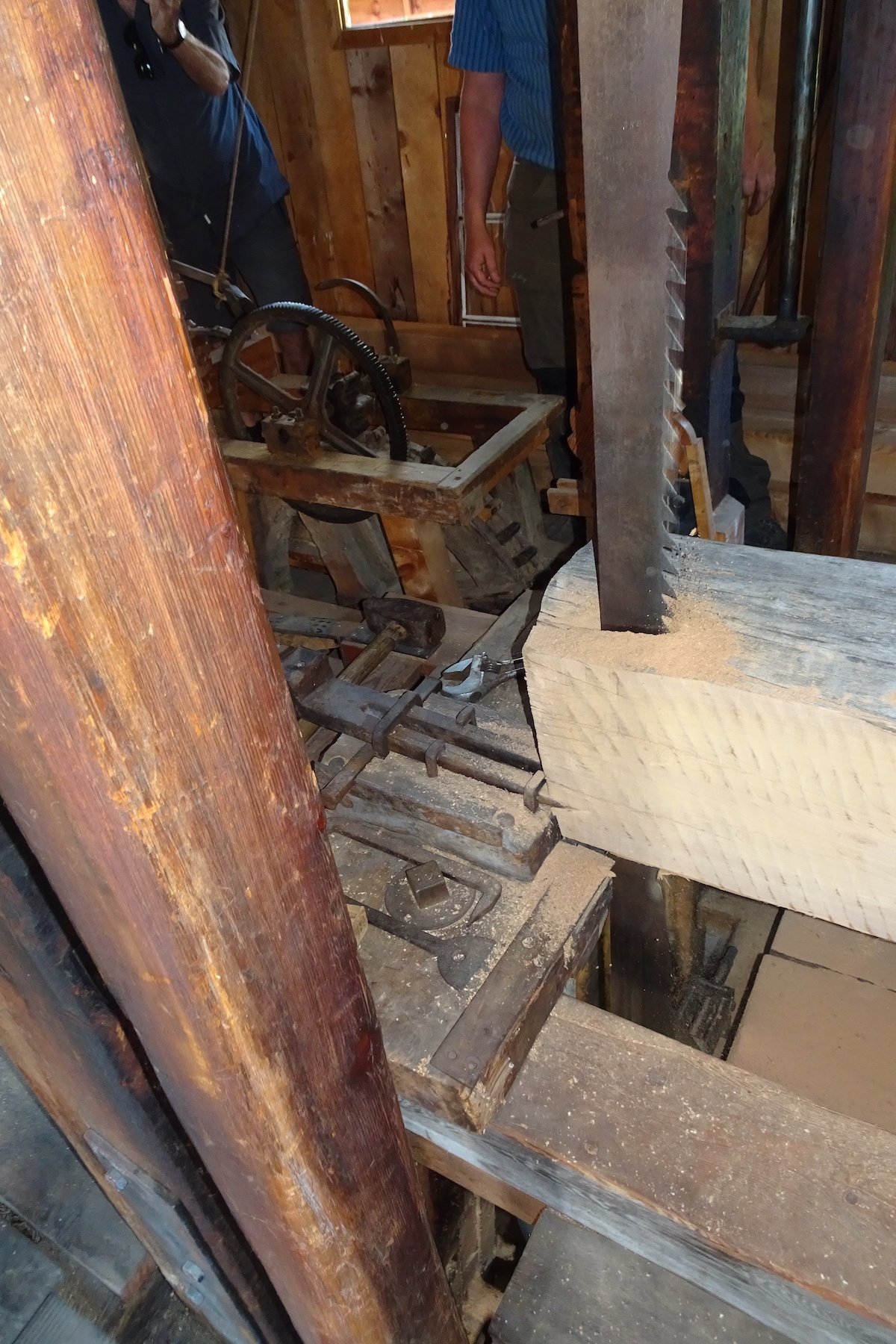 Wobei: Am zweiten Samstag im Juli ist in Reckingen ganz schön was los. Dann findet der Gommermärit statt. Da treffen sich alle zu Ländlermusik und streifen den Ständen mit regionalen Spezialitäten entlang. Auch die historische Säge von 1786 ist in Betrieb. Dank Wasserkraft und Transmissionsräder raffelt sich im Gebäude ein Sägeblatt der Länge nach durch einen Apfelbaumstamm. Das Resultat nach etwa 45 Minuten: ein exakt gesägtes Brett.