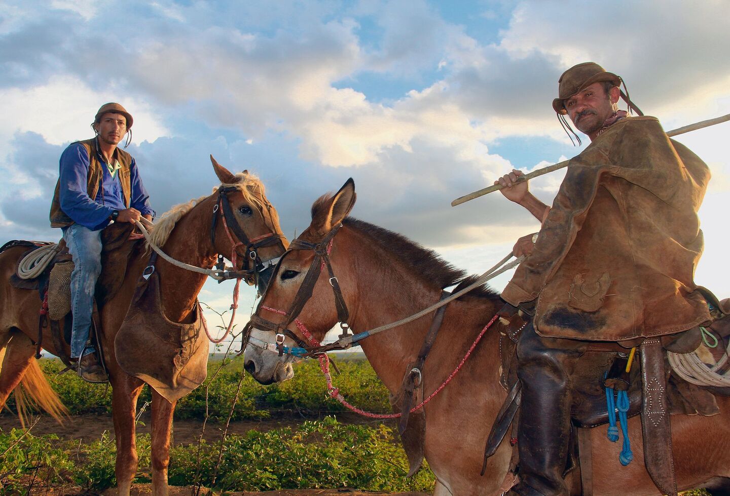 Wie ursprünglich die Caatinga ist, zeigt sich anderntags ausserhalb des Dorfes Pau in der Gegend von Canudos, als zwei Reiter mit von der Sonne gegerbten Gesichtern hoch zu Pferd aus der Dornenvegetation brechen. Die Pferde tragen lederne Schürzen, die Männer ebensolche Bein- und Brustkleider sowie Hüte. Das schützt sie vor den dornigen Zweigen. Sie gehören zu den Hartgesottenen, die in der Caatinga Vieh- und Feldwirtschaft betreiben. Heute würden viele jüngere Menschen aus diesem Gebiet in grössere Städte abwandern, sagt Kilma Manso. Sie kennt die Bevölkerung bestens. Die engagierte Frau aus Boa Vista ist unterwegs zu Bauern und eruiert den Schaden, den Lear-Aras auf ihren Feldern angerichtet haben. Sie entschädigt die Landleute im Rahmen eines Programms zum Schutz des Aras. Wenn der Regen ausbleibt und nichts als die kärgliche Maisernte bleibt, sitzt der Hunger mit am Tisch der armen Campesino-Familien. Verständlich, dass sie die Mais fressenden Lear-Aras als Feinde betrachten. Die stahlblauen Schreier ernährten sich ursprünglich von Palmnüssen, doch weichen sie heute gerne auf die leicht zugänglichen Maiskolben aus.