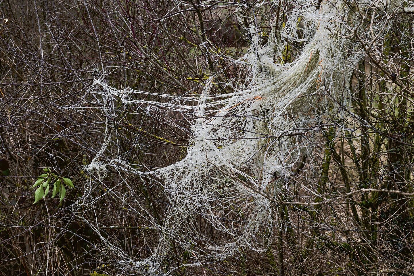 Vom Wind halb von der Scheiterbeige gewehte, alte Plastikplanen setzen Algen an. Weitere liegen auf dem Waldboden, überwuchert von Brombeeren. Vermutlich wird sich niemand mehr die Mühe machen, sie dort wegzunehmen und fachgerecht zu entsorgen. Ein paar Meter weiter hat sich ein zerschlissenes Plastiknetz in einer Hecke verfangen. Einst hat es wohl einen Beerenstrauch in einem Garten vor Vögeln geschützt, jetzt interessiert sich niemand mehr dafür.