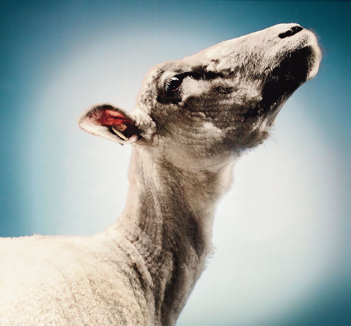 Dieser Unterschied zwischen den wolligen und den schlanken, geschorenen Schafen hat mich schon als Kind fasziniert. Für das Projekt arbeiteten wir mit dem Wanderschäfer Ernst Vogel zusammen. Am Schertermin machten wir ein kleines Casting. Die auserkorenen Schafe haben wir dann einzeln vor und nach der Schur in einem kleinen umzäunten Pferch mit einem eingefärbten Hintergrund aus Pappe fotografiert. Das lief ganz gut, auch wenn es nicht ganz einfach war, die Tiere dafür zu begeistern, kurz still zu halten. Bis dann allerdings ein Schaf herausgefunden hat, dass der Hintergrund ja ziemlich leicht zu durchbrechen ist. Von da weg ergriffen alle anderen Schafe auch die Flucht durch die Hintertür.