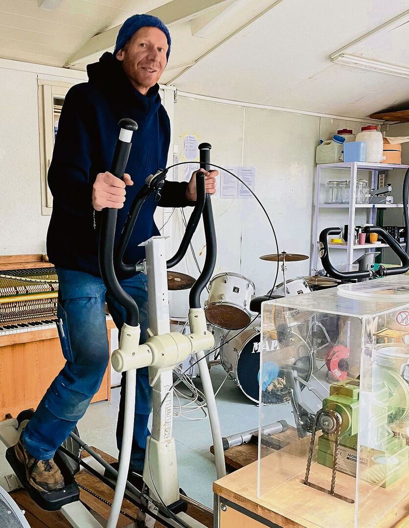 Im vermutlich kleinsten Fitnessstudio der Schweiz ist jeder willkommen. Jeweils am Dienstagnachmittag wird im 1133-Seelen-Dorf zwischen Bern und Freiburg gestrampelt, geschwitzt und auch viel gelacht. Manchmal sind ganze Schulklassen am Werk, manchmal Gruppen oder Einzelpersonen, die sich aus Neugierde oder Sympathie für dieses ungewöhnliche Projekt einfinden. Dass sich mit Armen und Beinen und ganz ohne Strom ein Produkt herstellen lässt, scheint Fitnessfreaks und Bewegungsmuffel jeder Altersklasse und Herkunft zu faszinieren.