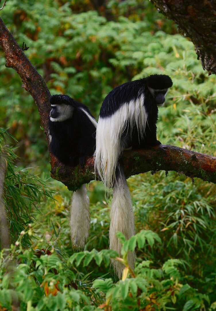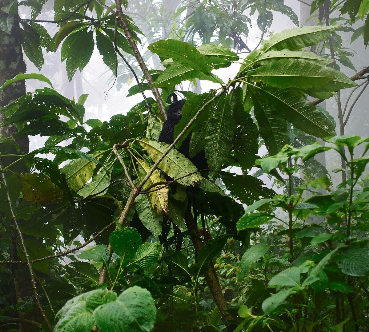 Der Nebelwald hält weitere Überraschungen bereit. Frühmorgens im Halbdunkel: Zischen, Feuerbällehuschen über Äste. Feiern da etwa Trolle und Faune im Geisterwald? Es handelt sich um balzende Andenfelsenhähne mit orangerotem Gefieder. Unscheinbar nähern sich am Rand bräunliche Weibchen, geben sich völlig unbeeindruckt von den Bemühungen der Herren – und wählen schliesslich denjenigen mit dem besten Balzplatz, dem schönsten Gefieder und den vitalsten Bewegungen zur Begattung aus. Die anderen Casanovas aber bleiben Statisten, auch wenn sie sich noch so grosse Mühe geben. Während im südamerikanischen Nebelwald ein Brillenbär inmitten von mit Greisenbärten, einer grauen Tillandsienart, bewachsenen Bäumen herumklettert, hangeln sich im afrikanischen Nebelwald an den Hängen des Mount Meru in Tansania Guerezas durch die von langen Flechten besetzten Äste. Die Affen mit regennassem, langem schwarz-weissem Fell trocknen sich auf einem dicken Ast sitzend in wärmenden Sonnenstrahlen, die durch den Morgendunst brechen. Eine aufgeschreckte Olivtaube fliegt auf einen dicken Ast, auf dem epiphytische Farne wuchern, Brillenvögel verschwinden in einem Busch, der wieder vom Nebel verschluckt wird.