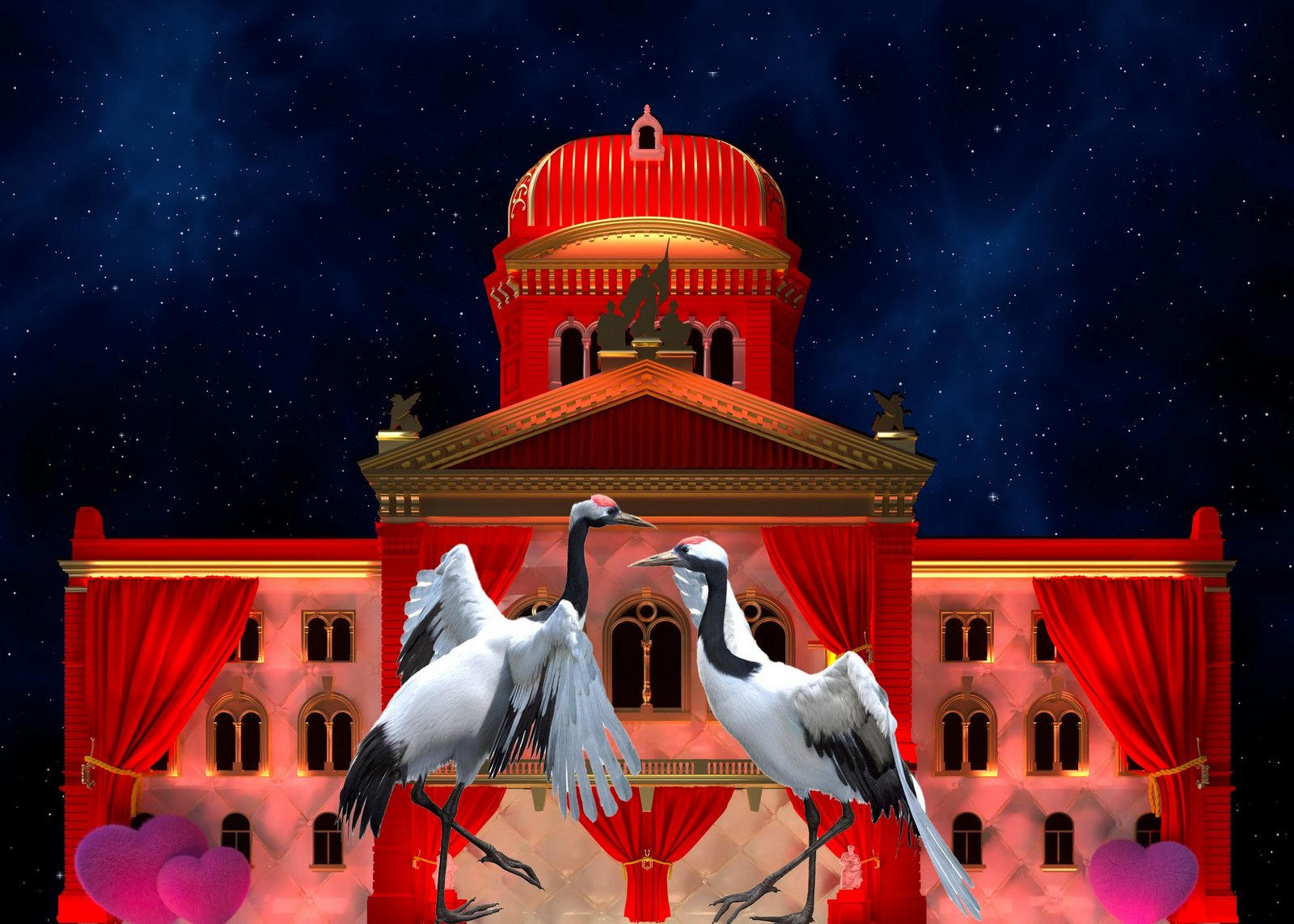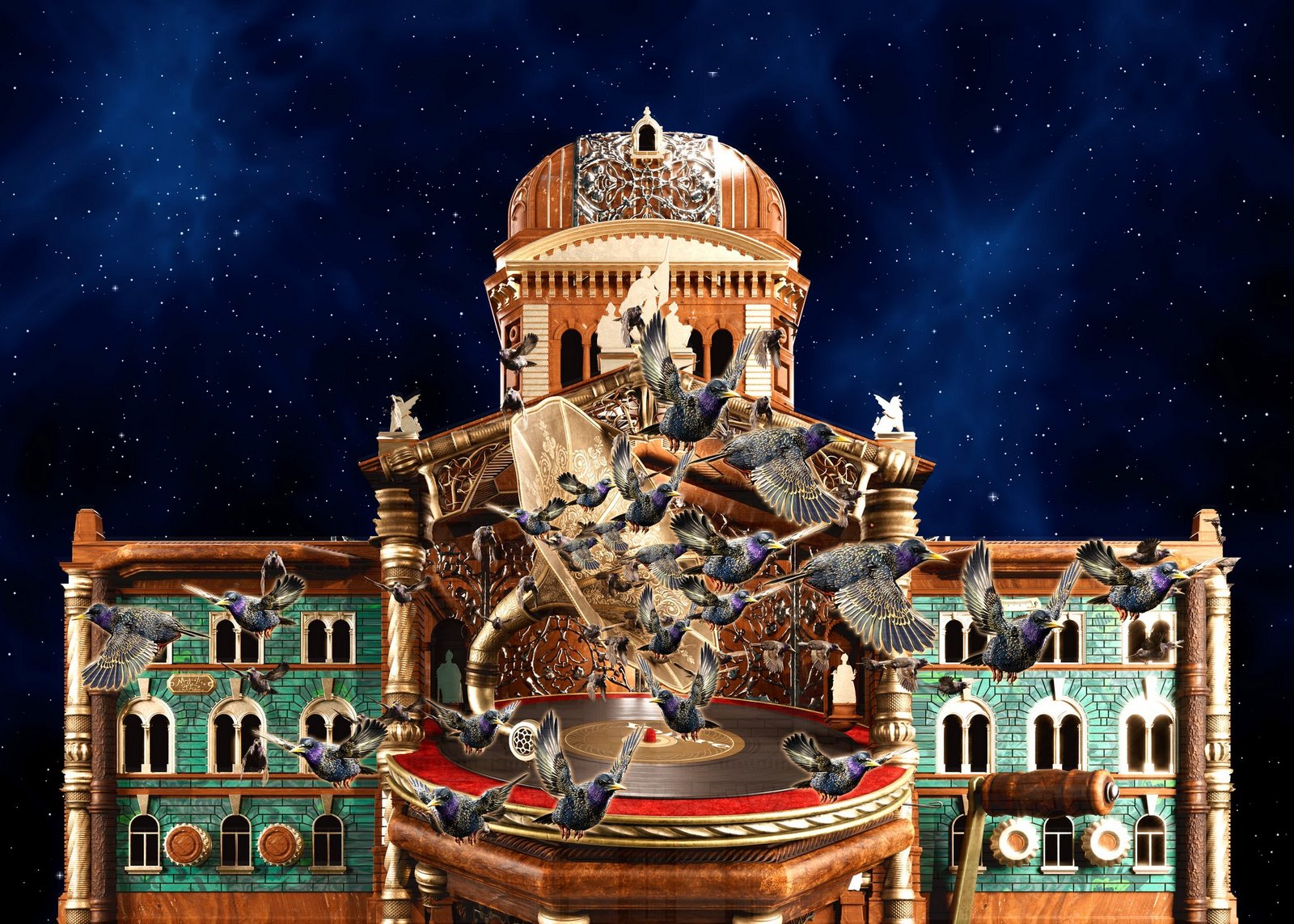 Das Bundeshaus verwandelt sich während der Show in diverse Lebensräume verschiedenster Vögel. Es wird zur Felsenhöhle und zum Forschungs-Biotop, aber auch zu einem pompösen Konzertsaal für gefiederte Sänger. Die kreativen Köpfe von Lumine Projections, Wien scheuen keine Herausforderung bei der Umgestaltung der Parlamentsfassade, die sich sogar um die eigene Achse zu drehen vermag. Der musikalischen Bandbreite sind ebenfalls wenig Grenzen gesetzt. Von Singvogelstimmen über Pink Panther bis Edith Piaf, von Beethoven bis Bob Marley ist alles dabei. Durch modernste Licht- und Tontechnik wird das Spektakel zum optischen und akustischen Erlebnis.