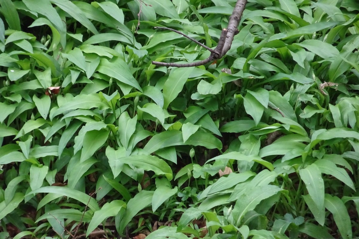 Gleichzeitig wie die Buschwindröschen gedeiht der Bärlauch, bevorzugt an feuchten Stellen. Die lanzenähnlichen, hellgrünen Blätter spriessen aus dem Buchenlaub und verwandeln Bachböschungen in grüne Flächen. Ein feiner knoblauchartiger Duft hängt im Tälchen mit glucksendem Bach.