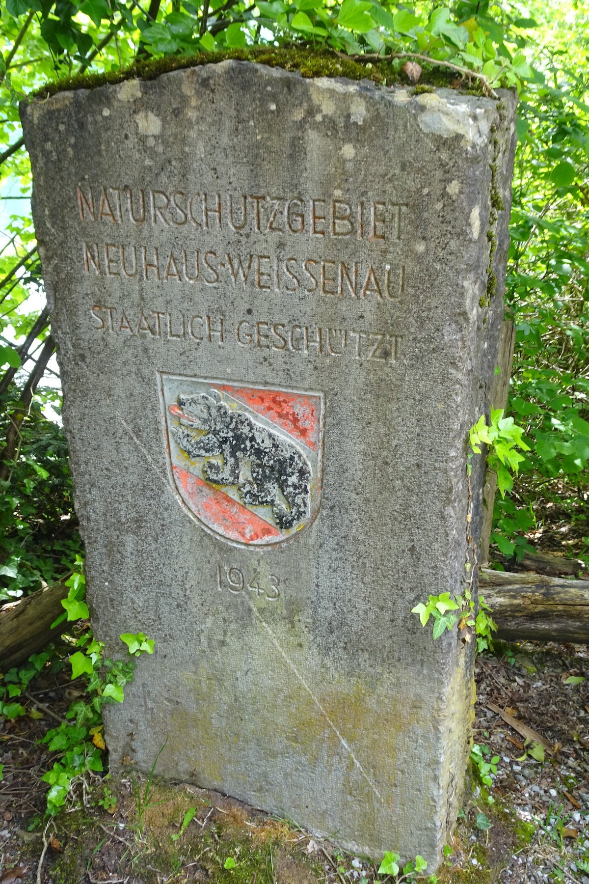 Bald ist die Ortschaft Neuhaus erreicht. Wer nicht mehr mag, kann hier den Bus zurück nach Interlaken nehmen oder gar das Kursschiff besteigen. Andernfalls führt der Weg weiter der Strasse entlang in Richtung Thun über den Lombach beim Campingplatz durch, wo eine viele Meter hohe Buchenhecke beeindruckt. Bald erinnern alte, längst leere Gehege an eine einstige Bärenhaltung eines Restaurants.