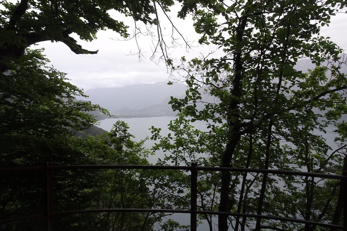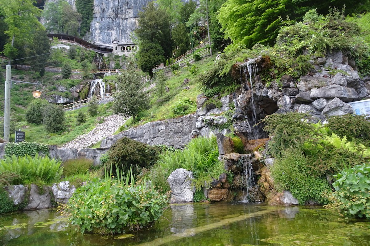 Wenn kein Schiff fährt, gibt es keinen anderen Weg als derjenige steil aufwärts bis zur Strasse. Dann eröffnet sich die Welt der Beatushöhlen. Spätestens hier wird bewusst, wie sagenumwoben und historisch die Gegend ist. Gefühlt hat man es schon lange, dass es sich um Kraftorte handelt, wo seit Jahrhunderten Menschen durchwandern, sich Unerklärliches zutrug und Pilgerer Energie schöpften.