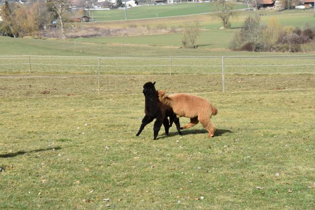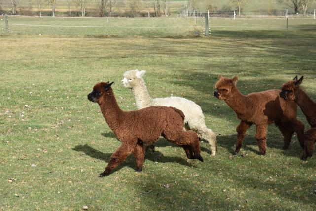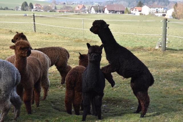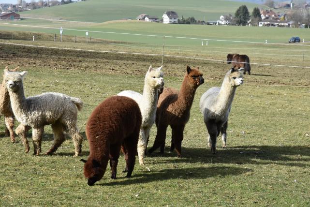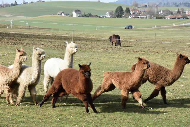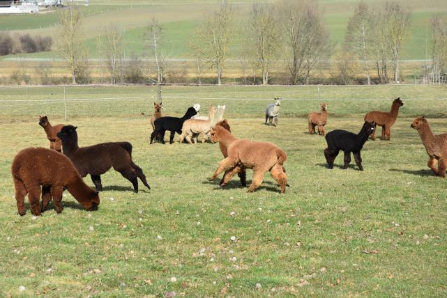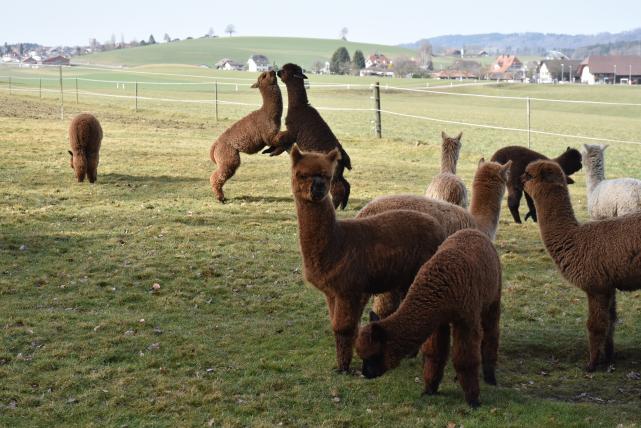 Dort sprinten die rund 20 Alpakas in der milden Februarsonne auf und ab. Zuerst geht es von rechts nach links an der Kamera vorbei und dann – einen Haken schlagend – wieder zurück. Die einen scheinen im Halbstarkenalter zu sein, bespringen sich gegenseitig oder vollführen ballettartige Techtelmechtel. Andere grasen, heben ihre Köpfe und blicken fotogen drein, stillhaltend wie Plüschtiere. Dem Charme dieser flauschigen, von fast weiss über verschiedene Brauntöne bis ganz schwarzen Neuweltkameliden kann sich kaum jemand entziehen. Die Alpaka-Haltung boomt. 3668 Tiere lebten 2019 in der Schweiz. Die Statistikabteilung des Schweizerischen Bauernverbandes, Agristat, ging für 2020 von 4,3 Prozent Wachstum aus, während die Zahl der Lamas leicht zurückging.