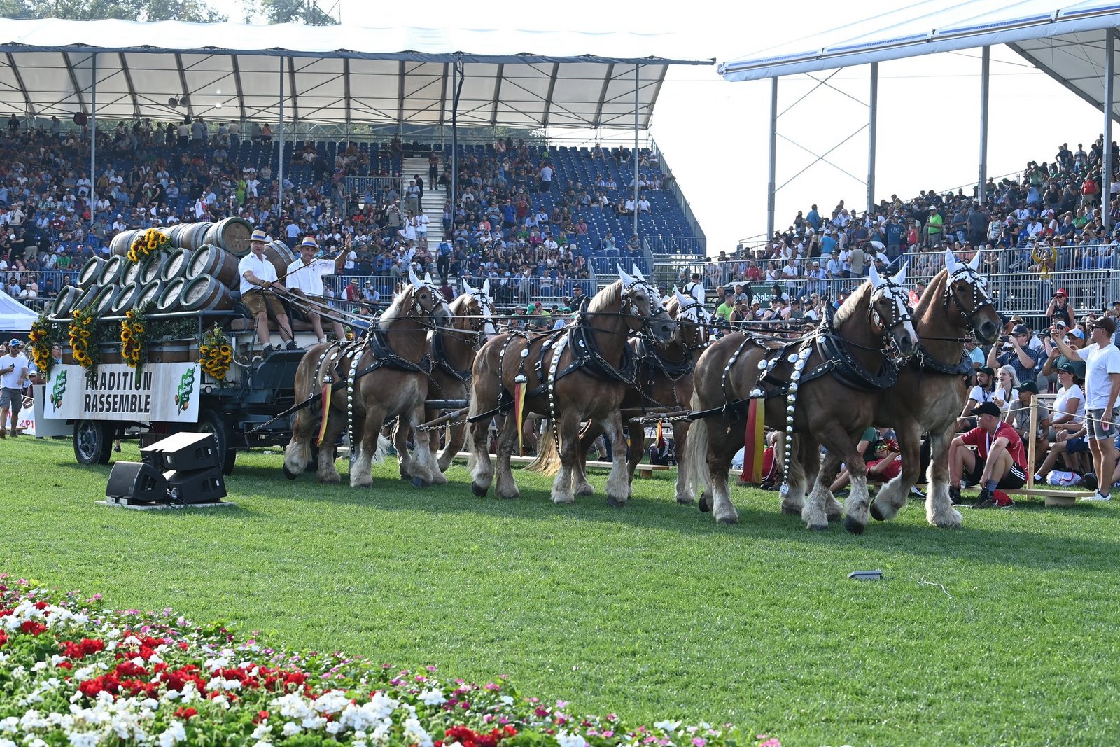 Die Rössli von Feldschlösschen haben mehrere Aufgaben – doch berühmt sind sie für den Sechsspänner. Dabei wird ein grosser Festwagen aus leeren Bierfässern von sechs stattlichen Kaltblütern gezogen. Die Tiere bewegen das Dreifache ihres eigenen Körpergewichts – der drei bis vier Tonnen schwere Wagen ist also für die trainierten Pferde kein Problem. Jährlich ist das einzigartige Gespann an über 60 Anlässen zu sehen. Exklusiv übrigens, denn keine andere Schweizer Brauerei hat noch einen Sechsspänner-Bierwagen. Zum Stallteam von Feldschlösschen gehören drei Fuhrmänner, sechs Belgische, zwei Süddeutsche Kaltblüter sowie seit Neustem ein Süddeutsches Kaltblutfohlen. Das Dreierteam der Fuhrmänner wird komplementiert durch Hansruedi Blatter. Das Oberhaupt des Ganzen: der 54-jährige Peter Nussbaumer. Seit 17 Jahren sei er dabei und fahre wahrscheinlich länger Kutsche, als er gehen könne, erzählt er. Privat züchtete er früher Freiberger und hat auch heute noch einen eigenen Fahrbetrieb. «Es ist wunderschön, das Hobby zum Beruf machen zu können», sagt der gelernte Dachdecker. Grossanlässe lassen sein Herz immer noch höherschlagen: «Als ich am Eidgenössischen Schwingfest 2022 in Pratteln in die grosse Arena einfahren durfte und mir dabei 50 000 Augenpaare zusahen, hatte ich Hühnerhaut.»