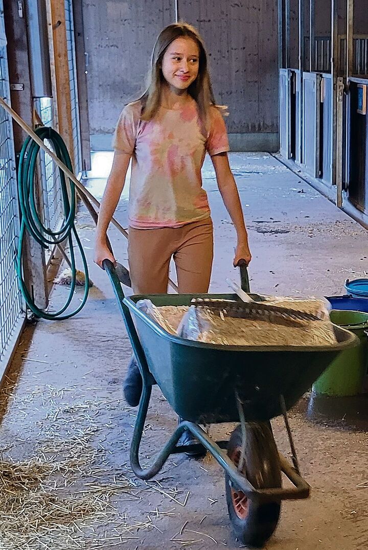 «Doch heute haben die Kinder einen vollen Stundenplan», erklärt Bea Weber gegenüber der TierWelt. «Es braucht darum viel Begeisterung, damit sich die Kinder und Jugendlichen für zwei Nachmittage pro Woche verpflichten können oder wollen.» Und weiter: «Der Stall sollte für die Mädchen nach der Schule die zweite Priorität sein.» Das sei wichtig, um auch den Tieren eine gewisse Kontinuität zu garantieren. «Sie sollten die Mädchen kennen und umgekehrt.» Die drei Mädchen, die an diesem Dienstag den Stall ausmisten und den Tieren ein neues Bett einstreuen, haben denn auch «ihr» Pony, wenn es ums Reiten geht. Bei Wilma ist es zurzeit das gescheckte Pony Miro, Emilia und Eva reiten die grösseren Ponys Tino und Pablo.