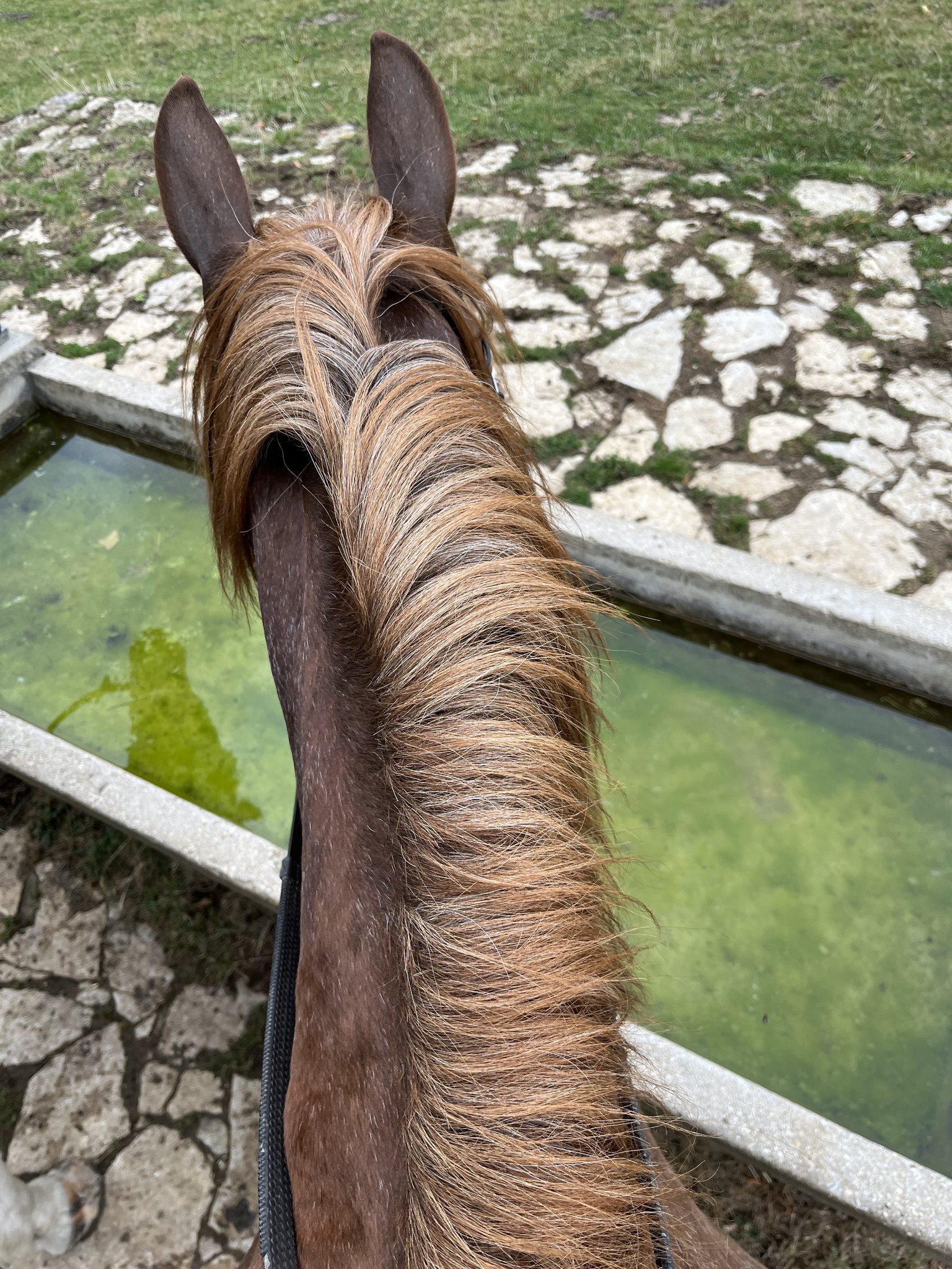 Und tatsächlich ist es ganz entspannt, sich auf dem breiten Rücken von Fuchsstute Emma die leichte Anhöhe hinauftragen zu lassen. Dabei bleibt genügend Zeit, die mächtigen Tannen hochzuschauen, die diese Landschaft so prägen und von denen Lise erzählt, sie seien leider momentan stark vom Borkenkäfer angegriffen. Und sich über die Steinmauern kundig zu machen, die mal schön erhalten, mal von der Witterung gezeichnet, verschiedene Felder voneinander abtrennen. «Diese Trockenstein-mauern, ein Kulturgut der Freiberge, kennzeichnen die Grenze zwischen privatem Land und den kommunalen Weiden.» Auch diese Gemeindeweiden sind eine Spezialität des Jura, denn hier können verschiedene Besitzer ihre Rinder und Pferde den Sommer über gegen Entrichten einer Taxe gemeinsam weiden lassen.