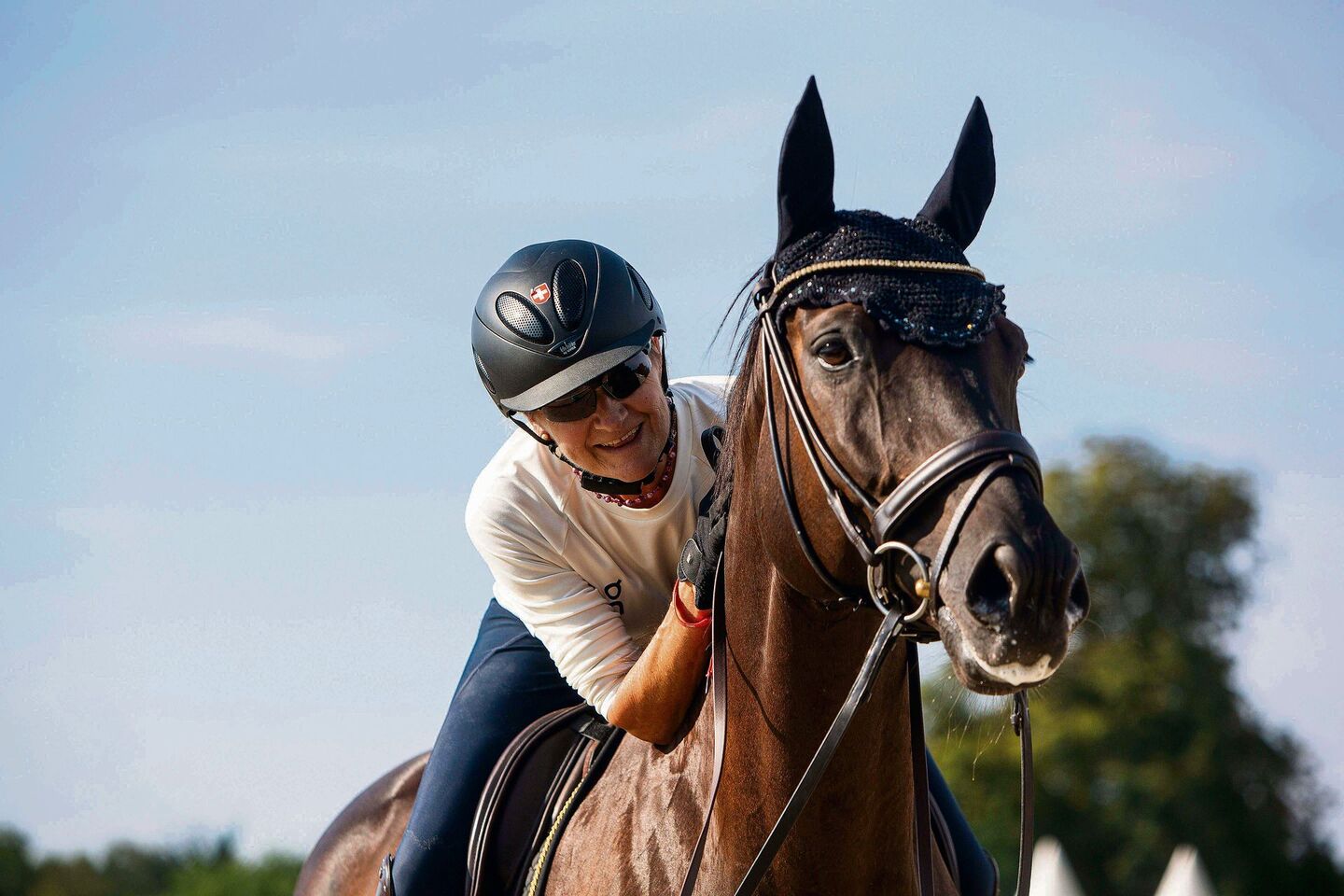 «Was machst du, wenn du ins kalte Wasser fällst? Du schwimmst», antwortet die mittlerweile 61-jährige Paraolympionikin auf die Frage, wie sie auf ihren Unfall reagiert hat. Dabei war sie an diesem Tag gerade erst an einem Patrouillenritt – einem Plauschturnier mit lustigen Aufgaben. Mit einem kurzen Galopp wollten sie und ihr Mitreiter sich die Zeit bis zur Rangverkündigung vertreiben. Gegessen hatte sie scheinbar zu wenig. Alles wurde schwummrig und sie fiel in vollem Galopp von ihren Pflegepferd Njet. Sie hatte Glück im Unglück. Die Rega brachte sie schnell ins Spital, wo man sie gleich operierte. Trotzdem wachte sie teilgelähmt auf. Ihre linke Seite ist bis heute schwächer, einige Muskeln arbeiten nur teilweise, gewisse gar nicht. Ihre linke Hand ist zu einer halb geschlossenen Faust fixiert. Von irgendetwas abgehalten hat sie das aber nicht. «Tokyo steht auf der Weide, Rio ist hier mit auf dem Platz und Paris habe ich unterm Hintern», sagt die 61-Jährige, als sie mit ihrem Nachwuchspferd Donar Weltino vorbeischreitet. Mit dem achtjährigen Wallach tanzte sie im Schlossgarten von Versailles an den Paralympischen Spielen in Paris. «Ich war die älteste Sportlerin der Schweizer Delegation und Donar der Jüngste.» In Rio 2016 ging sie zum ersten Mal für die Schweiz an die Paralympischen Spiele. Diese bestritt sie mit Phal de Lafayette. Der 22-jährige Senior trottet jetzt mit seiner Reiterin Katja, die die Olympionikin tatkräftig beim Bewegen der Pferde unterstützt, über den Platz. Im Galopp sieht man dem Wallach seine erfolgreiche Dressurvergangenheit aber klar an. Als Kind wurde sie mit dem Pferdevirus infiziert, sie schlich sich sonntags immer mit einer Freundin aus der Kirche und putzte die Ponys nebenan. Mit 16 machte sie die Rennlizenz und mit 18 die Trainerlizenz. Noch heute ist sie Trainerin und hat einige Schützlinge unter sich, dabei auch zwei Parareiterinnen. Selbst war sie in der Rennszene, danach auf dem Dressurplatz und in der Vielseitigkeit unterwegs.