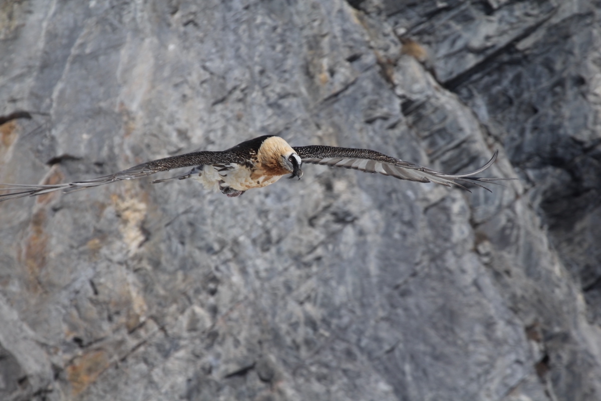 Dank der sauren Säfte im Magen des Bartgeiers löst sich der Knochenkalk auf. Der Nahrungsspezialist braucht ein grosses Gebiet, um ausreichend Knochen zu finden. Ein Revier kann bis zu 400 Quadratkilometer gross sein. Stefan Bachmann macht darauf aufmerksam, dass Bartgeier weniger Nahrung als ihre fleischfressenden Geierverwandten bräuchten. «Darum können sie auch höhere Bergregionen bewohnen.» Die Wildbestände in der Schweiz seien hoch, diejenigen von Nutztieren ebenso. «Daher kann man davon ausgehen, dass es im Lebensraum der Bartgeier genug Nahrung gibt.» Bachmann denkt da an Kadaver von Gämsen, Steinböcken und Hirschen.