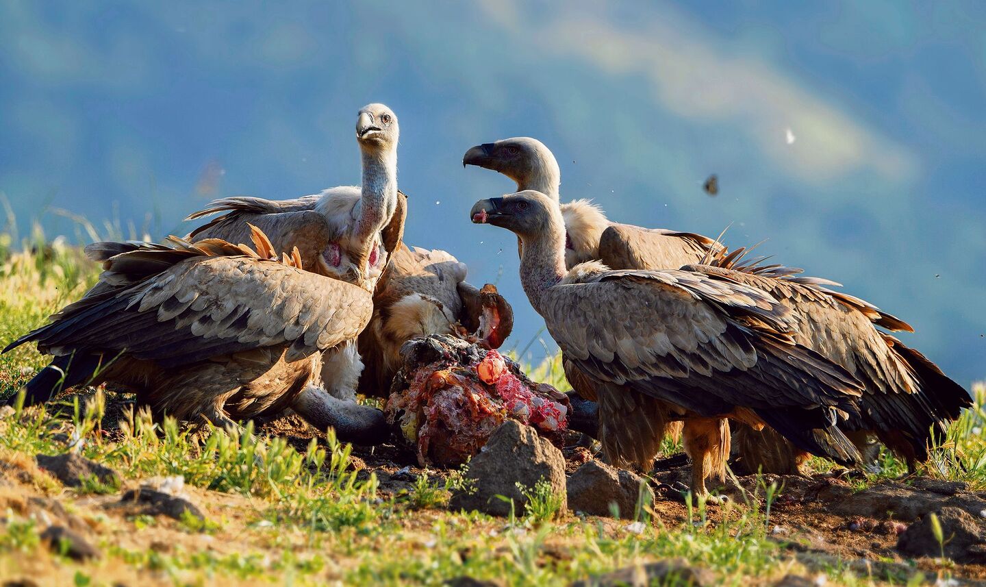 Ein Gänsegeier habe da an einem neugeborenen Kalb gefressen. Der Zustand des Kalbs nach der Geburt sei leider nicht bekannt. Birdlife Schweiz steht in engem Austausch mit den nationalen Birdlife-Organisationen Spaniens und Frankreichs. Auch aus diesen Ländern lägen nur ähnliche Meldungen vor, sagt Stefan Bachmann. Der Vogelexperte ergänzt: «Geier sind dank verschiedener Anpassungen Meister darin, Aas zu finden, und können dies über sehr grosse Distanzen. In der Natur spiele der Tod eine tägliche Rolle. «Es gibt dort mehr Futter für Geier, als man denken würde.» Dass Gänsegeier lebende Tiere anfallen würden, seien moderne Mythen. «Sie haben keine biologische Grundlage.» Gänsegeier machen sich über Aas her und überlassen den Bartgeiern die Knochen.
