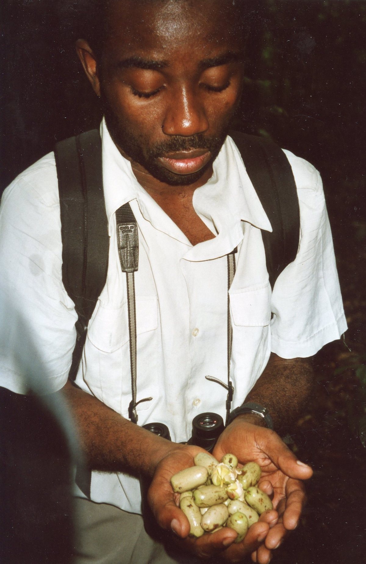 Die Schweizer Ornithologie-Touristen gelangten dank einer vogelkundlichen Reise in diesen entlegenen Winkel der Welt, mitten in den Regenwald Zentralafrikas. Alain Moundounga stammt aus der Umgebung des Ivindo-Nationalparks, wo die besonderen Buntkopf-Stelzenkrähen leben. Er führt regelmässig Touristen an diesen verborgenen Ort im Wald. Stelzenkrähen werden seit vielen Jahren in Europa nicht mehr gehalten. Diese Rarität zu entdecken, ist einer der Höhepunkte der Reise. Doch nicht nur das: Das Morgengrauen auf einer Bai, einer Waldlichtung mitten im zentral-afrikanischen Regenwald, wo salzhaltige Erde zutage tritt und wo sich Waldelefanten, Sitatungas, Pinselohr- und Riesenwaldschweine daran gütlich tun, gehört ebenso zu den unvergesslichen Erlebnissen der Reise wie die Begegnung mit einem Trupp Schimpansen entlang des Flusses Ubidi. Die Menschenaffen überqueren in aller Ruhe das Flachwasser eines Urwaldflusses, während die Reiseteilnehmer im Dickicht die harmonische Szenerie bestaunen.