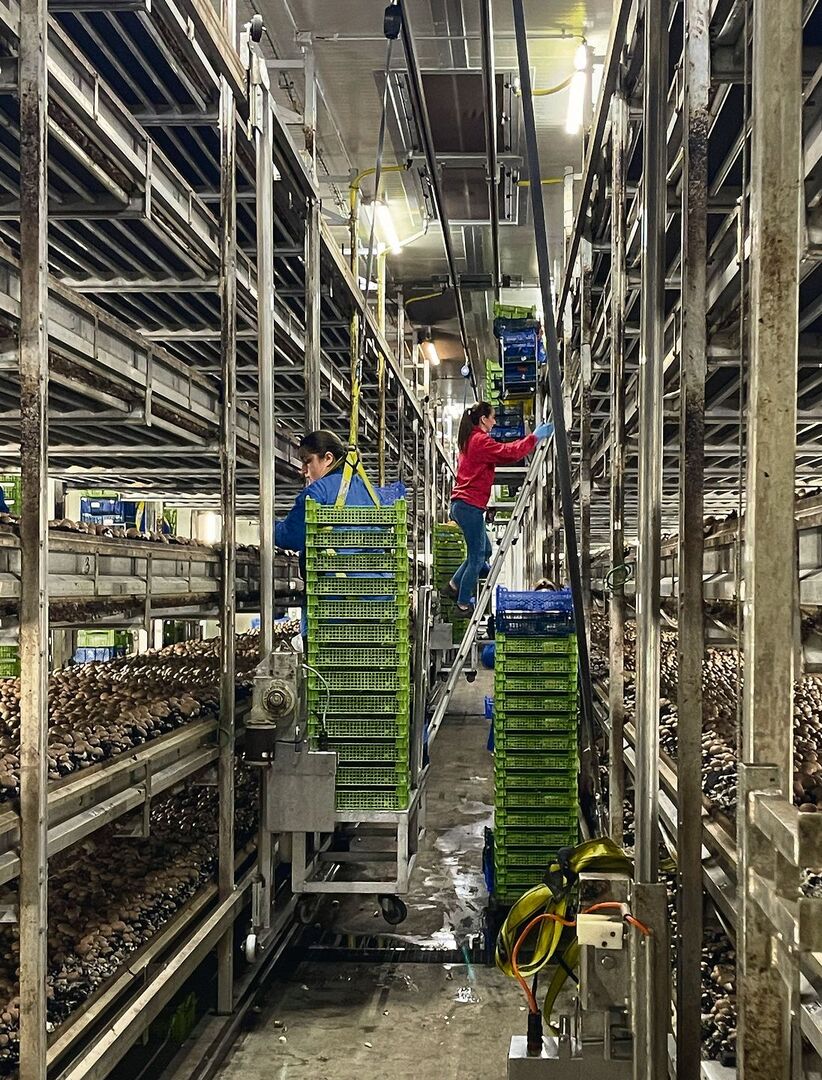 Dann kommen die Pflückerinnen zum Einsatz. Die Mitarbeitenden stammen aus über zehn verschiedenen Ländern. Die Pilze wollen auch an Weihnachten, Ostern und zur Ferienzeit geerntet werden. So ist die Wauwiler Champignon AG das ganze Jahr in Betrieb. Gerade sind die braunen Champignons erntereif. Mit geschickten Fingern pflücken die Arbeiterinnen drei der Fruchtkörper mit einer Hand, schneiden die Wurzelreste ab und legen die Pilze vorsichtig in Schalen. Bis zu 21 Kilogramm kommen so in einer Stunde pro Pflückerin zusammen. Auf die Frage, ob er selber auch mal Champignons pflückt, schüttelt Vonarburg den Kopf. «Ich wäre viel zu ungeschickt. Für das richtige und effiziente Ernten braucht es bis zu einem Jahr Erfahrung.» Entsprechend zählt er hier auf seine langjährigen Mitarbeiterinnen.