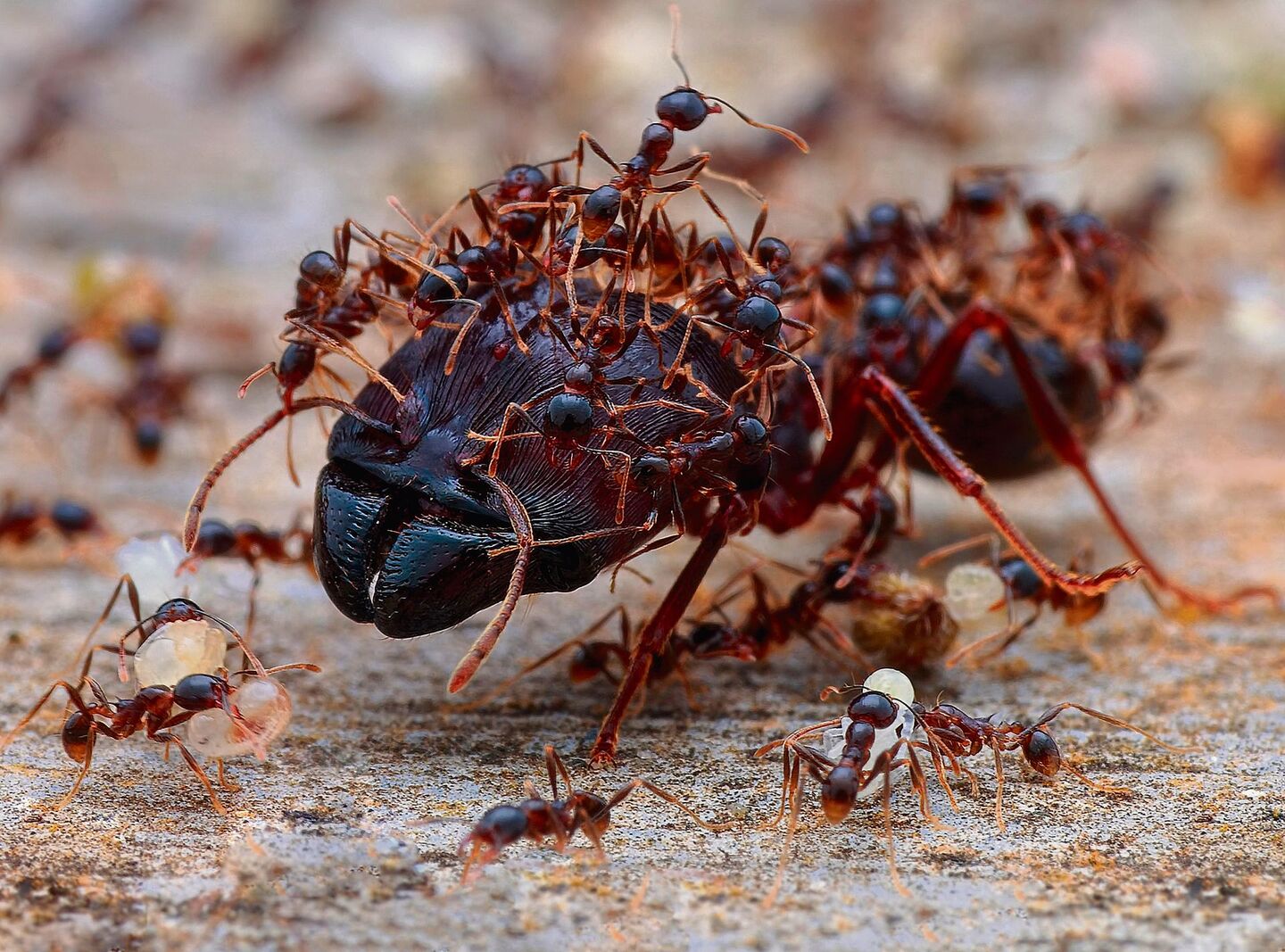 Ich und mein Co-Autor Benjamin Blanchard lieben beide Ameisen, und wir wollten wirklich, dass jeder nicht nur an interessanter Wissenschaft teilhat, sondern auch daran, wie schön einige dieser Arten sind. Wir waren all den unglaublichen Fotografen sehr dankbar, dass sie so atemberaubende Bilder von Ameisen gemacht und dazu beigetragen haben, das Buch optisch so ansprechend zu gestalten. Ich glaube, der Durchschnittsmensch sieht Ameisen als ziemlich unscheinbare kleine braune oder rote Flecken. Erst wenn man ein Makrofoto macht oder sie unter ein Mikroskop legt, erkennt man, dass ihr Aussehen viel komplexer ist. Ein Teil des Reizes dieses Buches besteht darin, dass wir zeigen konnten, wie atemberaubend sie anzusehen sind, und gleichzeitig ihr Verhalten und ihre Ökologie verstehen.