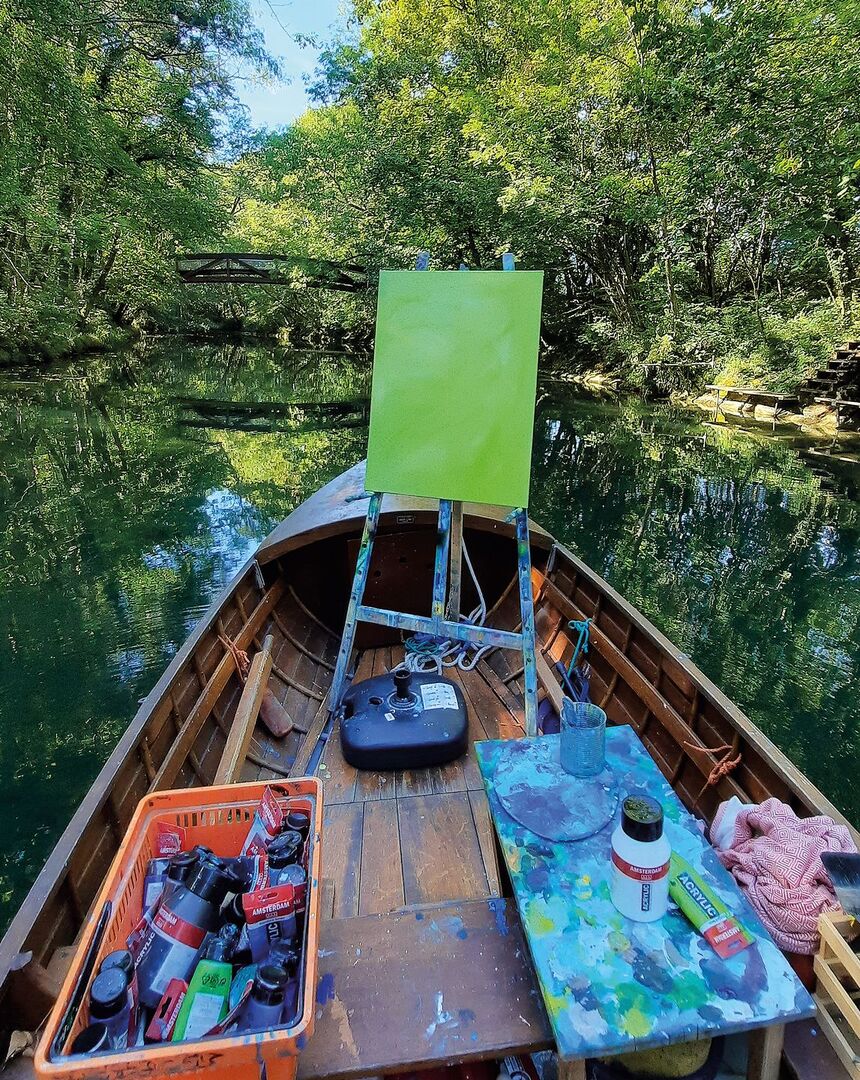 Mit Farben, Pinsel und Staffelei auf dem Wasser