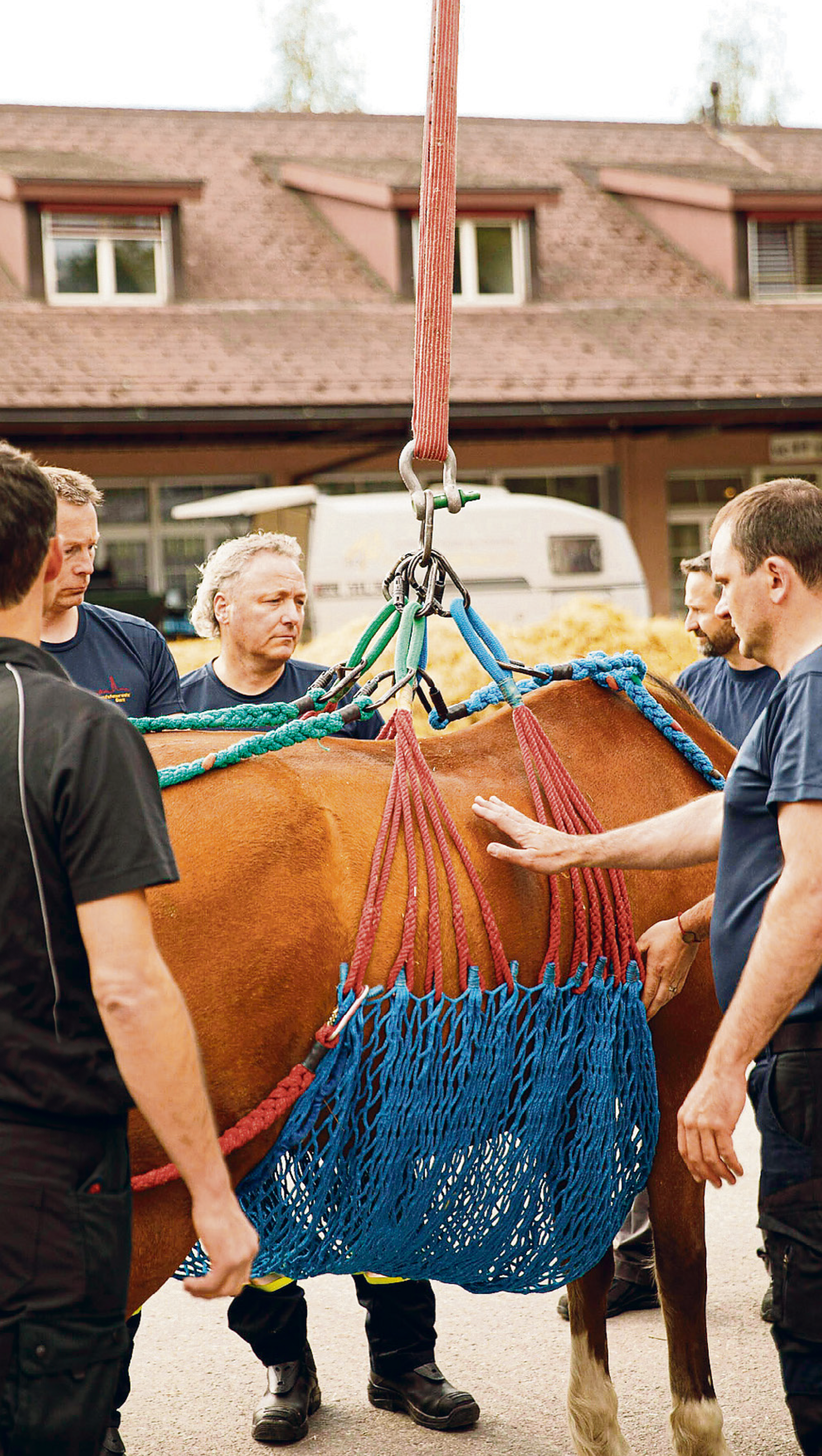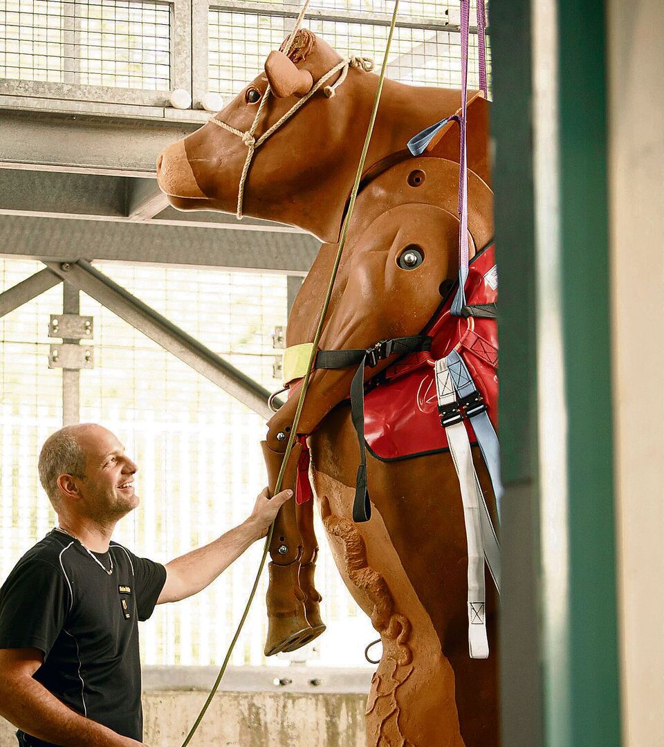 Wie so eine Rettungsaktion vonstattengeht, lernen die Feuerwehrleute bei einem jährlichen Kurs auf dem Stützpunkt der Berner Berufsfeuerwehr. Markus Wegmüller ist dort der Leiter der Aus- und Weiterbildung, so auch der Grosstierrettung, und bringt mit seinem Team den interessierten Feuerwehrmännern und -frauen die Grundlagen solcher Einsätze bei. Der 47-Jährige betreibt bei sich zu Hause eine Pferdepension und sommert zahlreiche Rinder. Entsprechend weiss er, worauf es bei den grossen Tieren ankommt, erst recht, wenn diese in Not geraten. «Wichtig ist, dass man während der Rettungsaktionen ruhig bleibt, denn diese Ruhe überträgt sich in der Regel auf die betroffenen Tiere», erzählt der Spezialist.