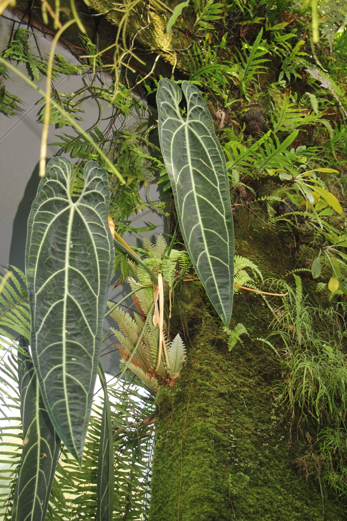 Die Pflanzen, die an den grünen Wänden gedeihen, sind Epiphyten, also tropische Aufsitzerpflanzen. Es sind keine Schmarotzer, sondern sie halten sich in der Natur mit ihren Wurzeln an einer Felswand oder auf den Ästen eines grossen Urwaldbaums fest. So ergattern sie einen Platz an der Sonne. Ihre Nahrung sammeln sie in Trichtern, wie die Bromelien, nehmen sie über die Blätter auf, wie viele Tillandsien, oder sie begnügen sich so wie Farne, Wachsblumen oder gewisse Kakteenarten mit dem geringen Wurzelsubstrat in halb morschem Holz und Moos. In der Natur verbreitet der Wind Farnsporen oder Vögel transportieren Samen. Auch das kommt im Vivarium vor. Andreas Hofer sagt: «Manchmal wächst irgendwo eine Orchidee, ohne dass ich sie dort gepflanzt habe.» Im Vivarium fliegen Vögel frei, so wie Rothaubenturakos oder Rotkopf-Papageiamadinen. Sie picken häufig in den Pflanzen, finden Beeren und transportieren schliesslich die Samen.