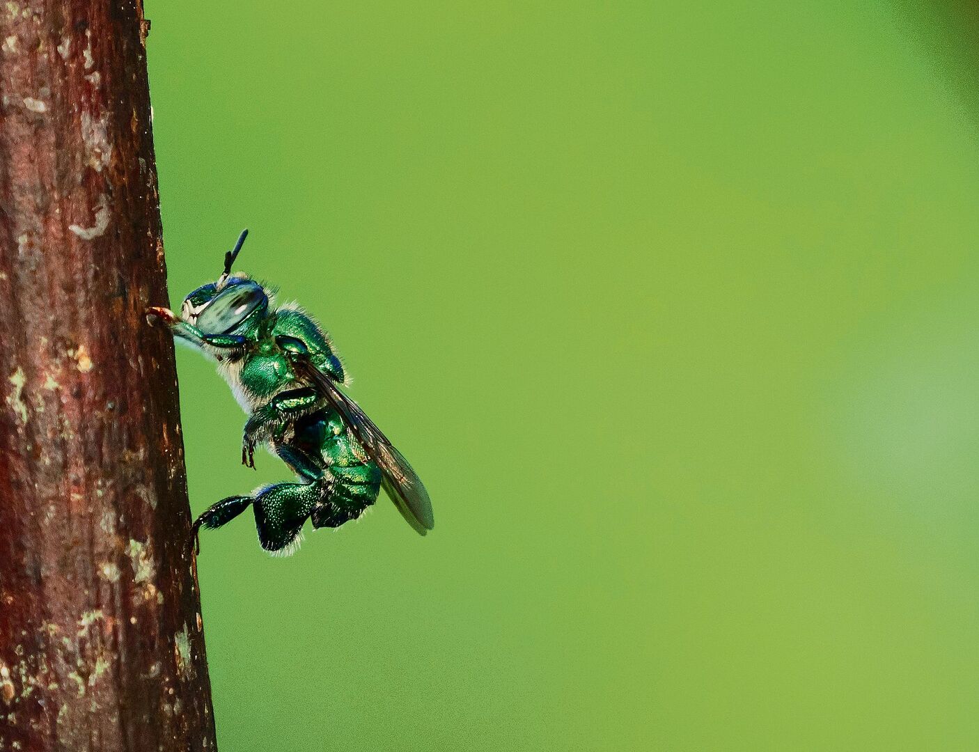 Über die PrachtbienenEs sind etwa 250 Spezies von Prachtbienen bekannt, die in den Tropen in Mittel- und Südamerika wichtige Bestäuber sind. Gerade viele Orchideenarten sind für ihre Bestäubung von Prachtbienenmännchen abhängig, weswegen die Tiere im Englischen auch orchid bees genannt werden. Die Orchideen produzieren als Belohnung spezifische Blütendüfte, die von den Bienenmännchen gesammelt werden. Es existieren fünf verschiedene Gattungen von Prachtbienen, die in Grösse und äusserem Erscheinungsbild stark variieren können. Die Bienenmännchen sammeln die Düfte mit Haarbüscheln an ihren Vorderbeinen, die sie in die Taschen an den Hinterbeinen auswringen.