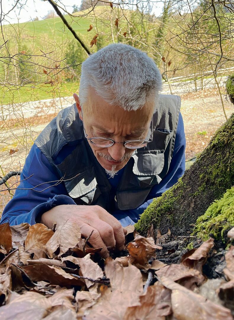 Peter Müller sieht den Wald mit anderen Augen. «Die vielen Fichten sind im Mittelland ein Problem für Schnecken», erklärt er mit Blick auf den Wald am Seerücken im Thurgau. Müller kümmert sich als selbstständiger Biologe hauptsächlich um den Erhalt der biologischen Vielfalt einheimischer Weichtiere. Heute ist er in einer wichtigen Mission unterwegs: seltene Arten zu finden. Denn der Lebensraum der Schnecken auf der Nordseite des Seerückens ist gefährdet. Die kurvenreiche Kantonsstrasse soll ausgebaut werden. Müller will nun die Umgebung nach möglicherweise gefährdeten Schneckenarten absuchen, um gegebenenfalls Schutzmassnahmen anzuregen.