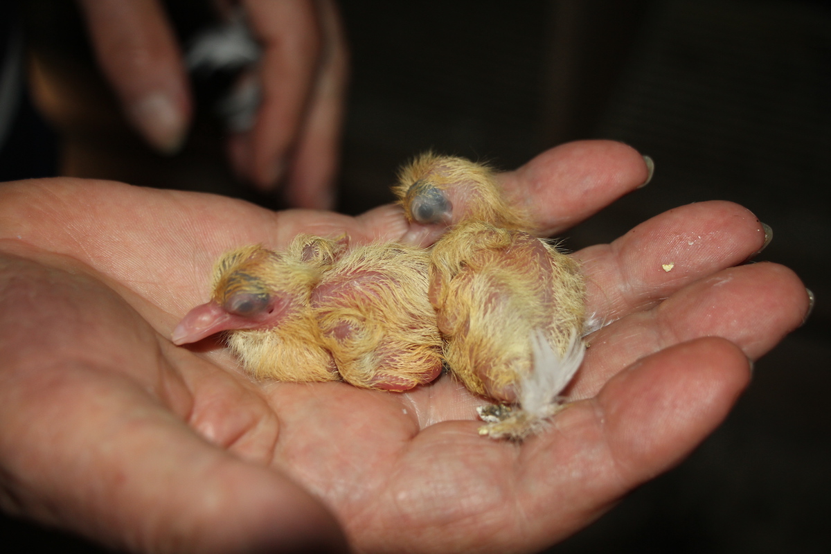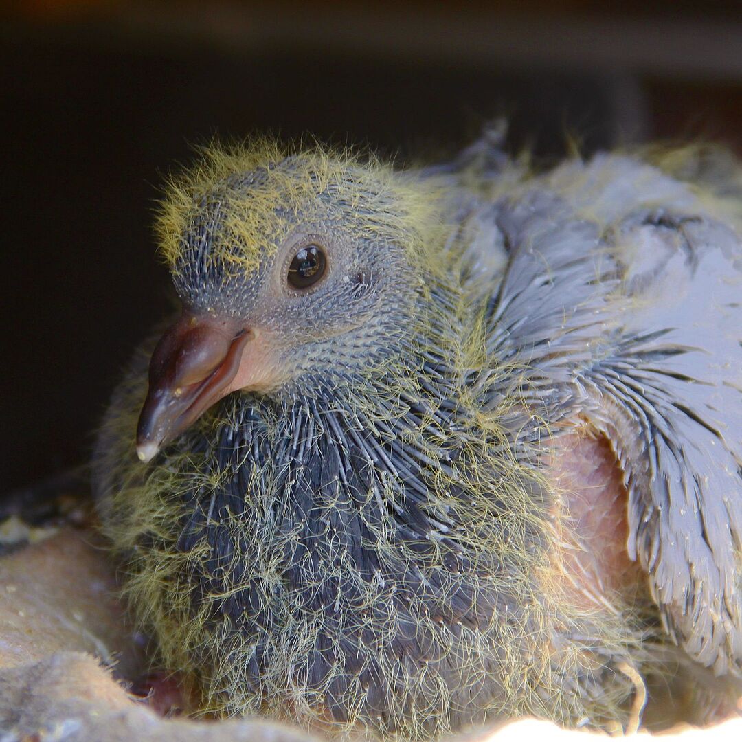 Die Taube legt immer nur ein Ei. Es wird entnommen und von Ammeneltern ausgebrütet und aufgezogen. So legen die seltenen Tauben im Schutz der Volieren nach, es entsteht eine mehrfache Eier-Ausbeute. Die Volierenleiterin berichtet, dass ein Paar meist lebenslange zusammen bleibe. Dank dem Zuchtprojekt leben heute wieder um die 500 Tauben in der Natur. Alle ausgewilderten Tauben werden mit einem Ring versehen und im Wald und an Futterplätzen durch Studentinnen und Studenten beobachtet.