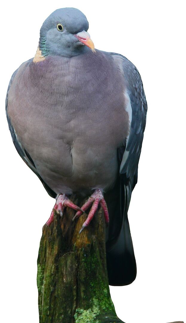 Die Ringeltaube ist die grösste bei uns lebende Art und wirkt fast wie ein Papagei, wenn sie paarweise aus dem Gras aufflattert oder auf einem Ast herumstolziert. Teilweise zieht die Art im Winter nach Südeuropa und wird dort stark bejagt.