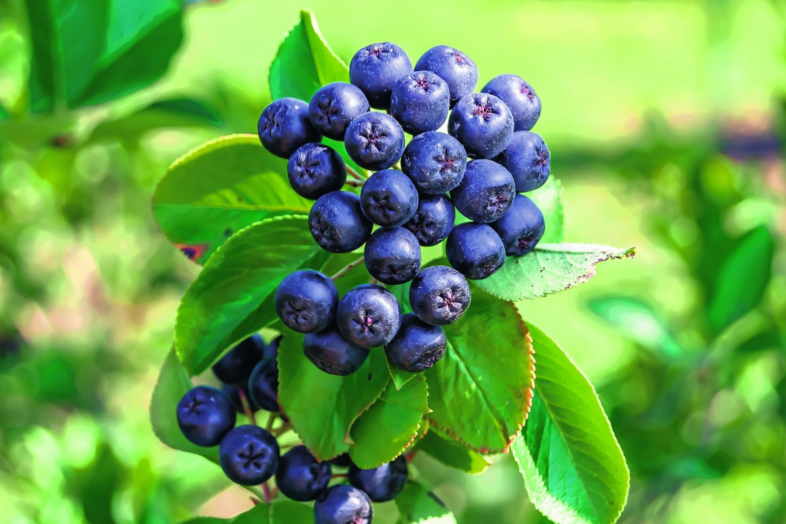 Der bis zu drei Meter hohe Aronia-Strauch blüht von Mai bis Juli in strahlendem Weiss. Von August bis Oktober können die kleinen, schwarzblauen Beeren geerntet werden, die an Heidelbeeren erinnern. Roh schmecken sie leicht süss und etwas säuerlich-herb. Aufgrund ihrer zahlreichen Vitamine und der besten antioxidativen Wirkung in der Welt der Früchte, gilt die eisenhaltige Beere als regelrechtes Superfood.