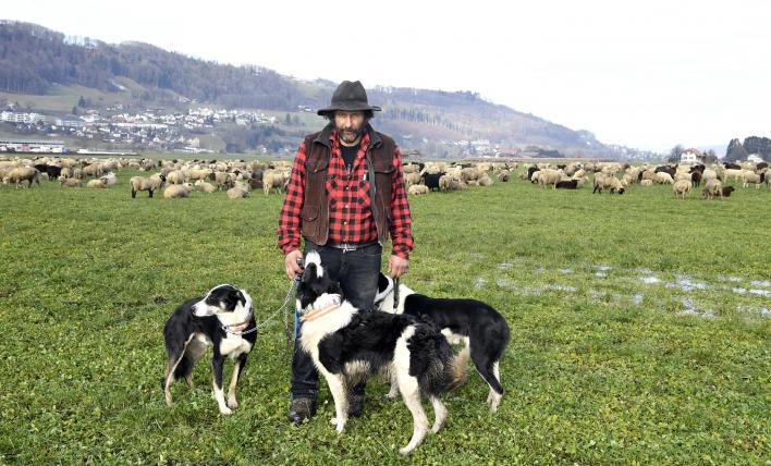 Und auch ein sehr zurückhaltender. Der Schafbauer erzählt lieber über seine Hunde als über sich: «Ich trainiere sie zunächst daheim auf dem Hof mit nur wenig Tieren. Sie lernen sehr schnell und sind willig. Ein Border Collie merkt fast instinktiv, wo die Grenzen für die Schafherde sind. Und so nach etwa drei Jahren können sie alles, was sie können müssen.» Daheim in Rüeggisberg hat der Schäfer auch Schutzhunde gegen den Wolf.