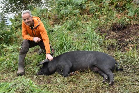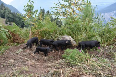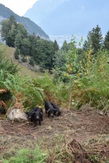 Seit drei Jahren sind die einst verloren geglaubten Schwarzen Alpenschweine zurück in der Schweiz. Sie leben ständig im Freien, fressen Kräuter und bewegen sich viel. Dies macht sie zu exquisiten Fleischlieferanten.