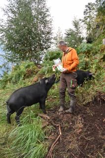 Die robusten Alpenschweine sind in jeder Hinsicht perfekt an das Leben in den Bergen angepasst. Die Sommersonne kann ihnen dank der dunklen Haut und Borsten nichts anhaben. Im Winter schützt sie ein dichteres und gröberes Fell vor Kälte. Dank ihrer hohen Beine sind sie berggängig und wendig. Auch büxen sie gerne aus, wenn ihnen etwas nicht passe. Irgendwie kommen sie überall durch. Mittlerweile könne er ihren Spuren gut folgen, sagt Renner schmunzelnd. «Und wenn ich sie rufe, kommen sie schon zurück.»