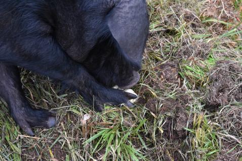 Wie zum Beweis steckt eines der Mädels seinen recht langen Rüssel tief ins Erdreich und bearbeitet es so energisch, dass die Schlappohren heftig auf und ab wackeln. Während die Sau laut knackend Wurzelteile zerbeisst, erzählt Renner, wie er auf einen Artikel im Magazin des Tierparks Goldau hin Kontakt zu Grünenfelder aufnahm. Dieser habe sich die Örtlichkeiten angeschaut und für gut befunden. Es ist auch ein Schlaraffenland für die Tiere: Erdlöcher zum Suhlen und Dösen, Kräuter und viel Kleingetier im Boden, das sich rauszuholen lohnt.