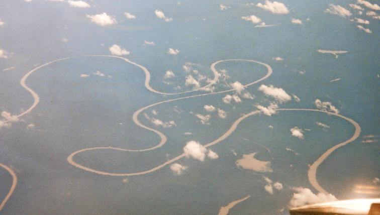 Der Tambopata-Fluss entwässert in den Madre de Dios, der in den Rio Madeira fliesst und dieser wiederum in den Amazonas. Der Oberlauf des Amazonasstroms in Brasilien heisst Rio Solimões. Bei Tefé im brasilianischen Bundesstaat Amazonas stehen die Wassermassen schier. Der Varzea-Wald, ein Überschwemmungswald, ist auf die Fluten ausgerichtet, die ihn jährlich während der Regenzeit erreichen, sodass das Wasser seinen Höchststand erreicht. Im April findet das Leben nur noch in den Baumkronen statt, so hoch steht das schwarze Wasser.