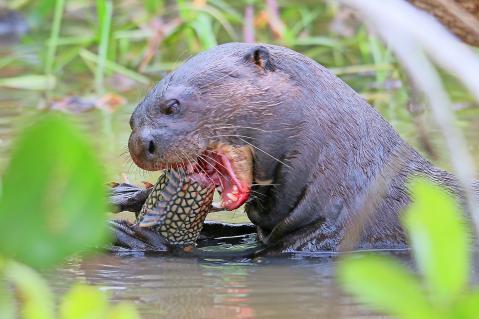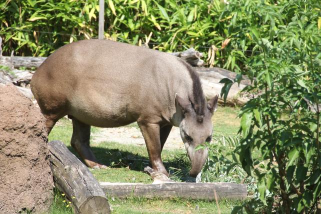 Keine Chance, den grossen, eigentümlichen Einzelgänger zu sehen, der kleine, sich schlängelnde Pfade durch den Wald anlegt. Dort, wo man vor lauter Pflanzen nur knapp die Hand vor sich sieht und im Schlamm versinkt, lebt der braune Säuger mit weisslichen Fellanteilen am länglichen Kopf heimlich. Mühelos durchschwimmt er Flüsse. Das Fell von Jungtieren ist braun und von weissen Strichen durchzogen. Sie dienen vermutlich der Auflösung von Konturen. «Ein Schutz vor dem Jaguar», sagt Edwin.
