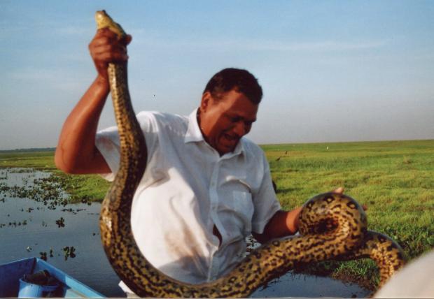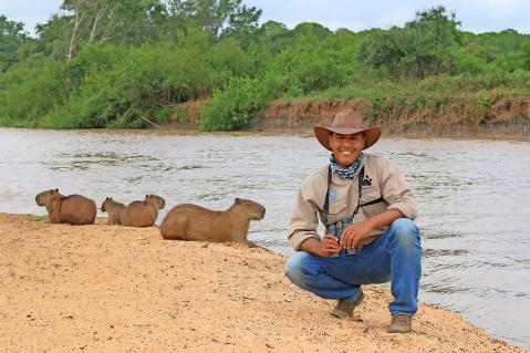 Sumpfige Seen, so weit das Auge reicht. Dazwischen Landerhebungen mit vielen Erdhügeln. Sie entpuppen sich bei näherem Hinsehen als ruhende Wasserschweine oder Capybaras, die wie übergrosse Meerschweinchen aussehen. Dazwischen reglose Kaimane, als wären sie aus Plastik. Am Rand einer Viehweide, wo Bäume wachsen, bleibt Victor stehen, zeigt ins Astwerk und ruft: «Ein Tamandua!» Der Kleine Ameisenbär, der da schläfrig aus dem Astwerk blickt, scheint ein Bindeglied zu sein zwischen dem am Boden lebenden Grossen Ameisenbären und dem Zwergameisenbären, der ausschliesslich in Bäumen lebt.