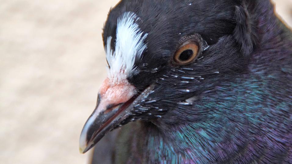 Aber aufgepasst, die Nasenlöcher zählen nicht zum Oberschnabel, sodass diese auch nicht durchgefärbt sein müssen. Es gibt Vertreter, die bereits aus dem Nest mit vollständig durchgefärbten Oberschnäbeln – inklusive der Nasenlöcher – gehen. Daraus resultieren fast immer sehr dunkle Schnabelwarzen, die dann erst mit dem Alter, bei vielen Tauben erst im zweiten Jahr, so hell wie gewünscht werden. Tauben mit solch satter Oberschnabelfarbe besitzen fast immer auch eine aus-serordentlich intensive Farbe.