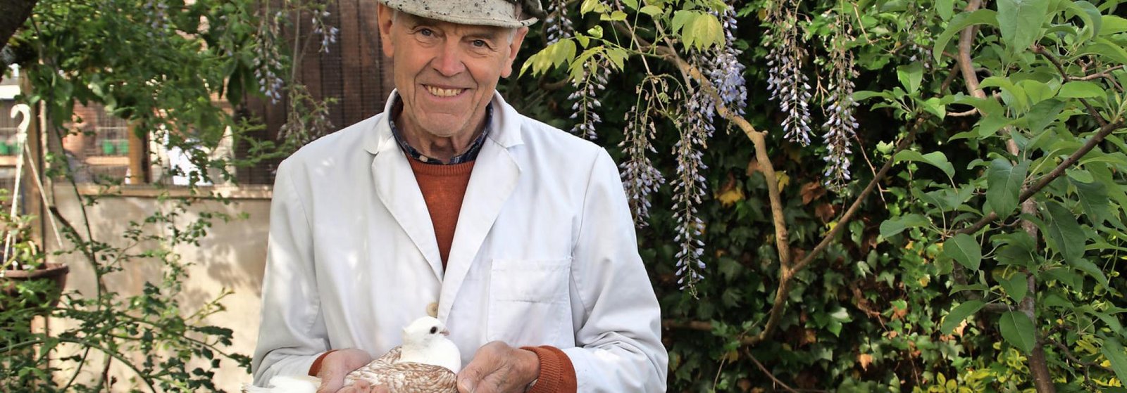 Taubenzüchter versorgen täglich ihre Tauben. Das schafft Vertrauen zwischen Tier und Mensch. Die gleiche Kleidung kann die Basis noch vertiefen. Für Taubenzüchter ist ein weisser Mantel empfehlenswert, den auch Preisrichter tragen.