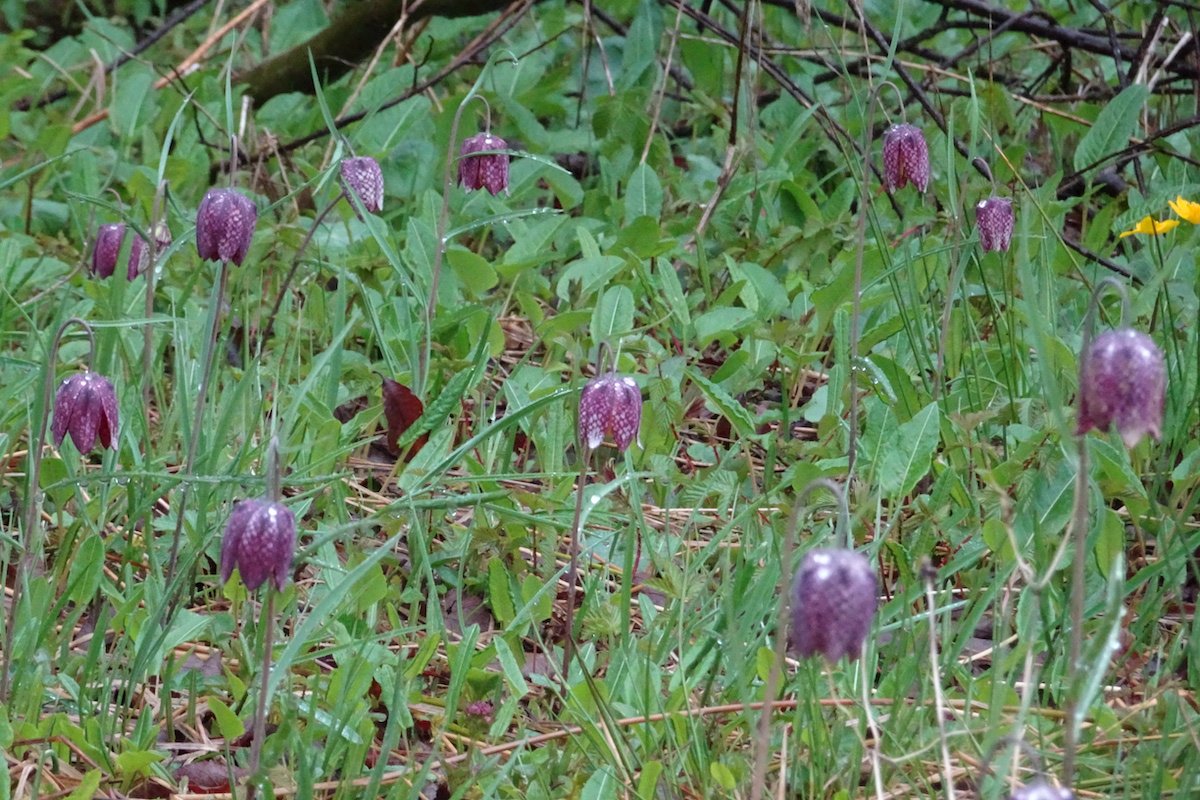 Die Schachbrettblume ist eine rare Wildpflanze der Schweiz. Ab Mitte April zeigen sich die glockenartigen Blüten in einem sumpfigen Feld bei Les Brenets NE ganz nahe der Grenze zu Frankreich. Dort gedeiht der grösste Bestand.