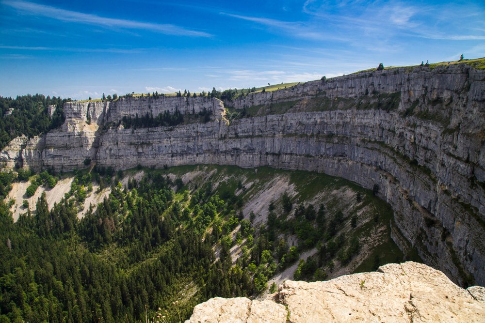 Es lohnt sich auf alle Fälle, den Besuch im Val-de-Travers nicht direkt in einer Destillerie zu beginnen. Denn das Tal hat viele Wanderrouten, die es zu entdecken gibt. Eine der schönsten befindet sich in der Nähe von Noiraigue: der Creux du Van, eine Art Grand Canyon der Schweiz. Im Creux du Van über dem Neuenburgersee präsentiert sich die Natur in einem gigantischen Amphitheater.