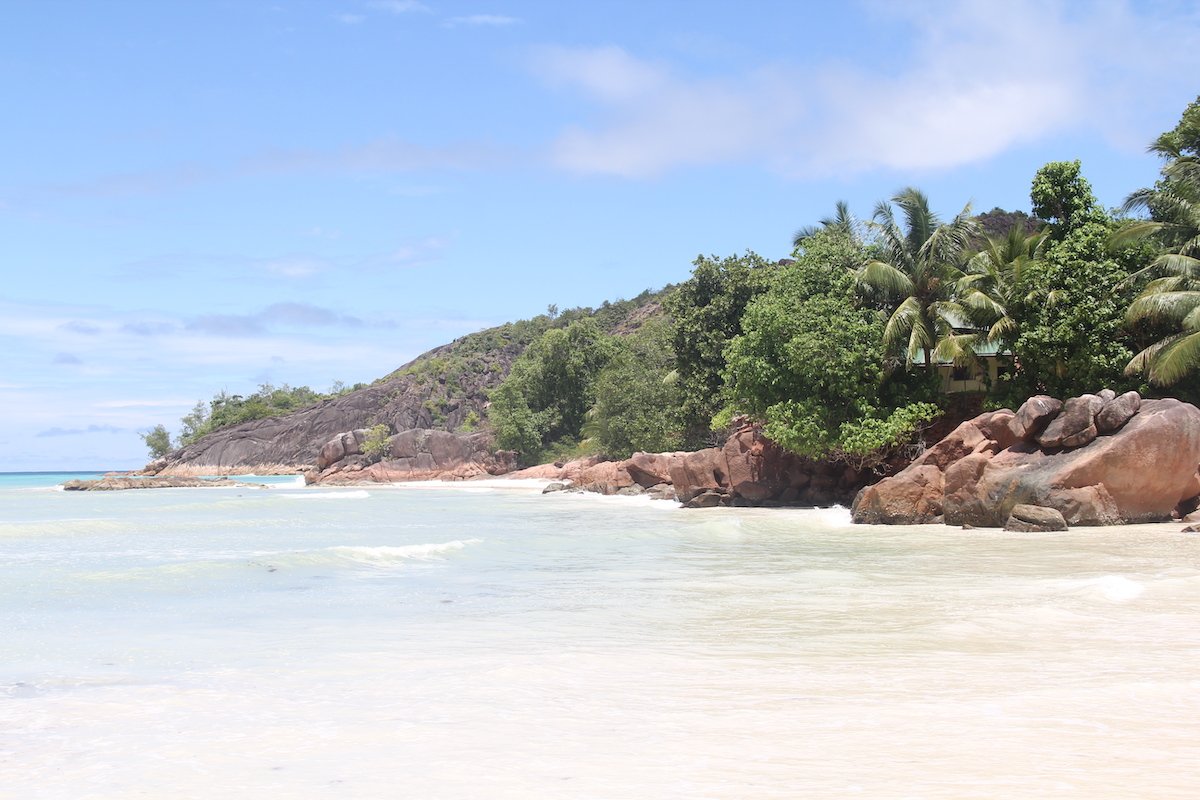 Der selbstständige Staat der Seychellen weiter nördlich wird in 42 Granit- und 73 Koralleninseln aufgeteilt. Das Schiff taucht in azurblaues Wasser, von der Reling sind im sanften Wind wogende Palmen zu sehen. Granitfelsbrocken liegen wie hingeworfene Murmeln auf goldgelbem Strand. Das Ziel: Praslin. Im Inselinnern wuchern die Coco de Mer, die typischen Seychellenpalmen, die nur noch auf dieser kleinen Insel sowie auf der vorgelagerten Insel Curieuse wachsen.