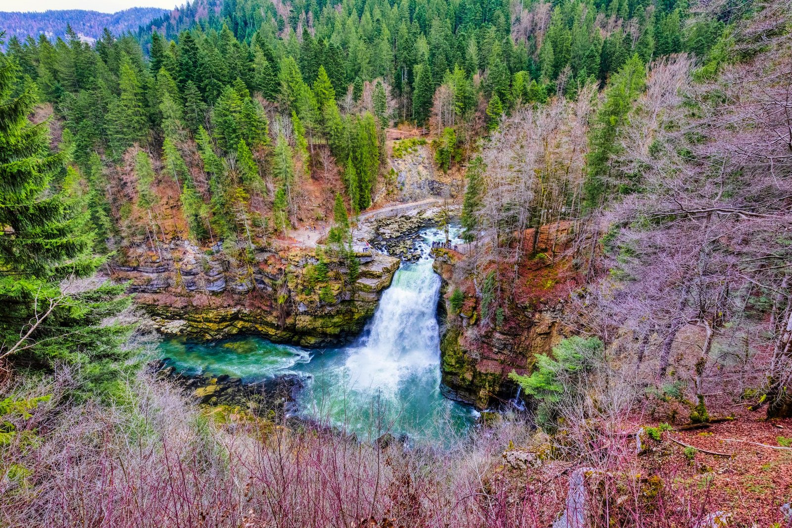 Der Wasserfall des Doubs gehört mit 27 Metern zwar nicht zu den höchsten, aber zu einem der schönsten. Der Doubs dient als Grenze zwischen der Schweiz und Frankreich. Dieser Wasserfall kann auf Bootstouren auf dem Lac des Brenets aus der Nähe betrachtet werden.