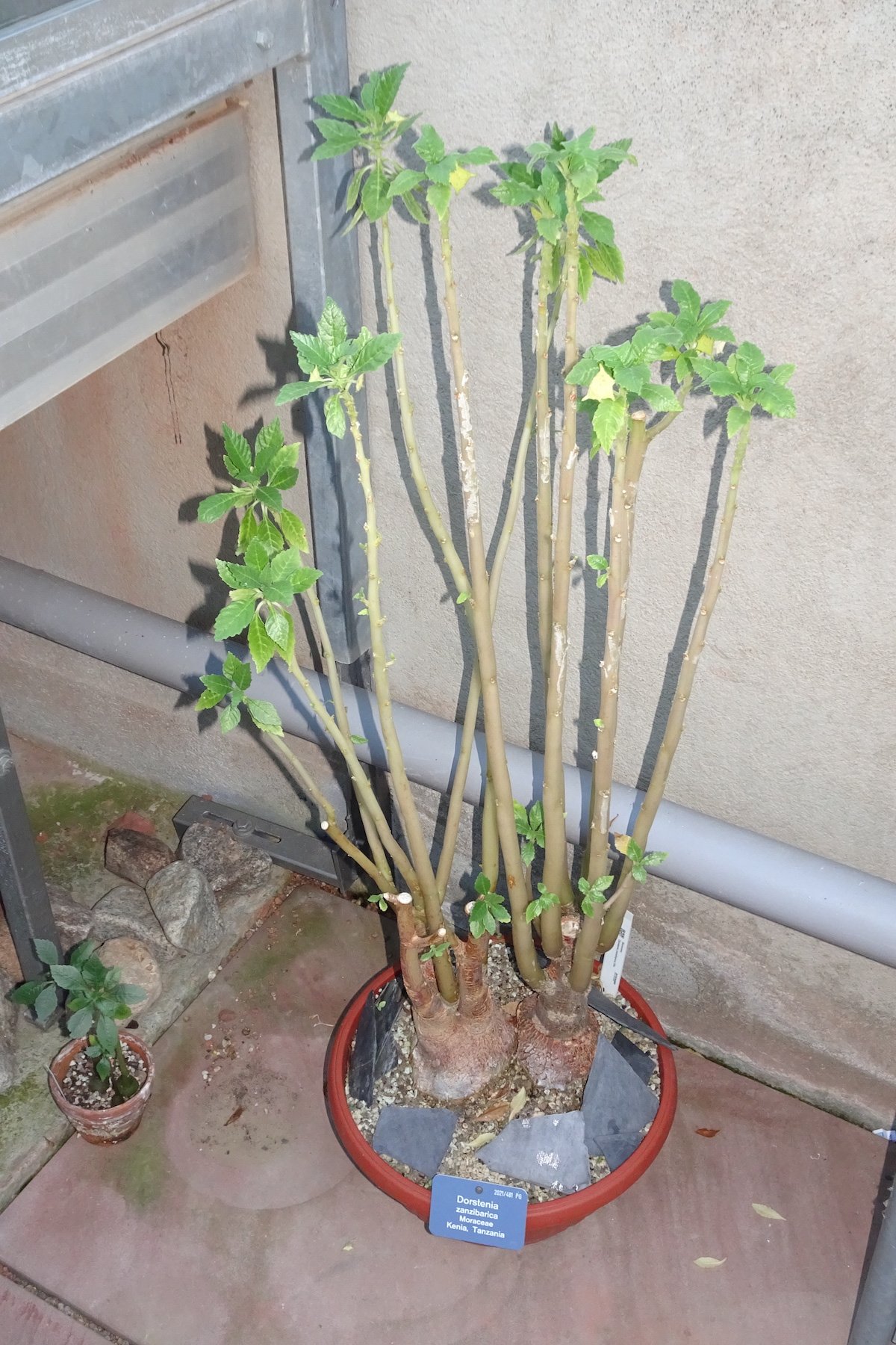 Es gibt auch sukkulente Maulbeergewächse, zum Beispiel die Gattung Dorstenia, auf die Edith Zemp im Sukkulentenhaus des Basler botanischen Gartens hinweist. Sie bildet dicke Stämme aus, in welchen die Pflanzen Wasser speichern. Das Verbreitungsgebiet der Gattung erstreckt sich von den amerikanischen Kontinenten bis nach Afrika und Madagaskar.