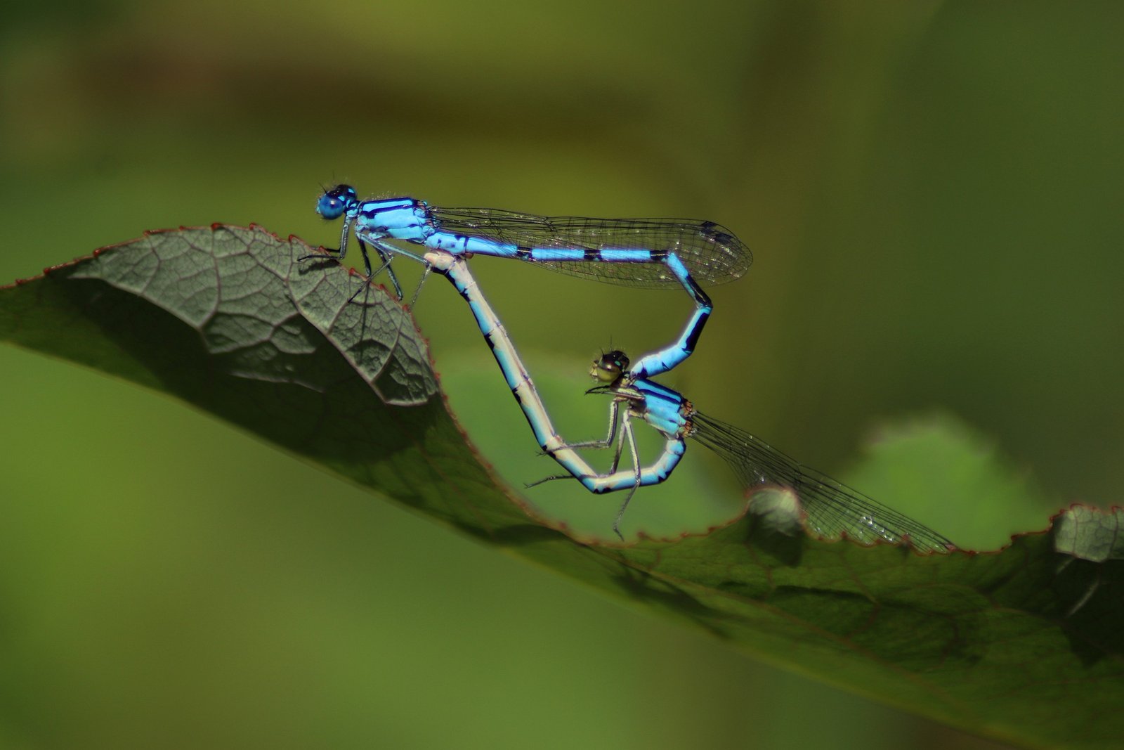 Weibliche Libellen stellen sich tot, wenn sie keine Lust darauf haben sich mit Männchen zu paaren. Wenn es dann aber doch dazu kommt, bilden Männchen und Weibchen eine Liebeskette, die aussieht wie ein Herz.